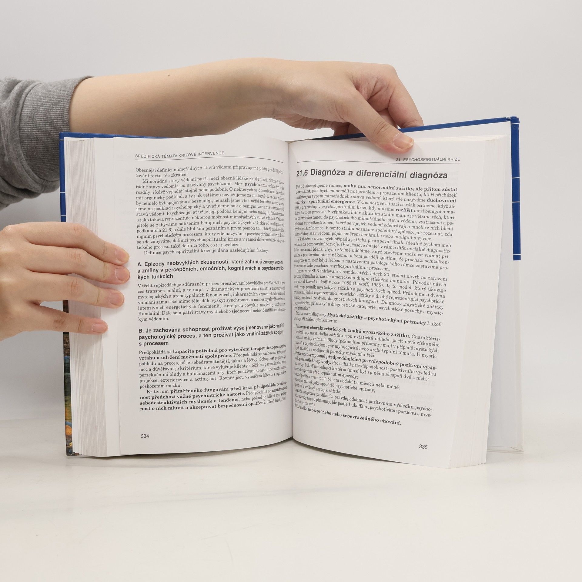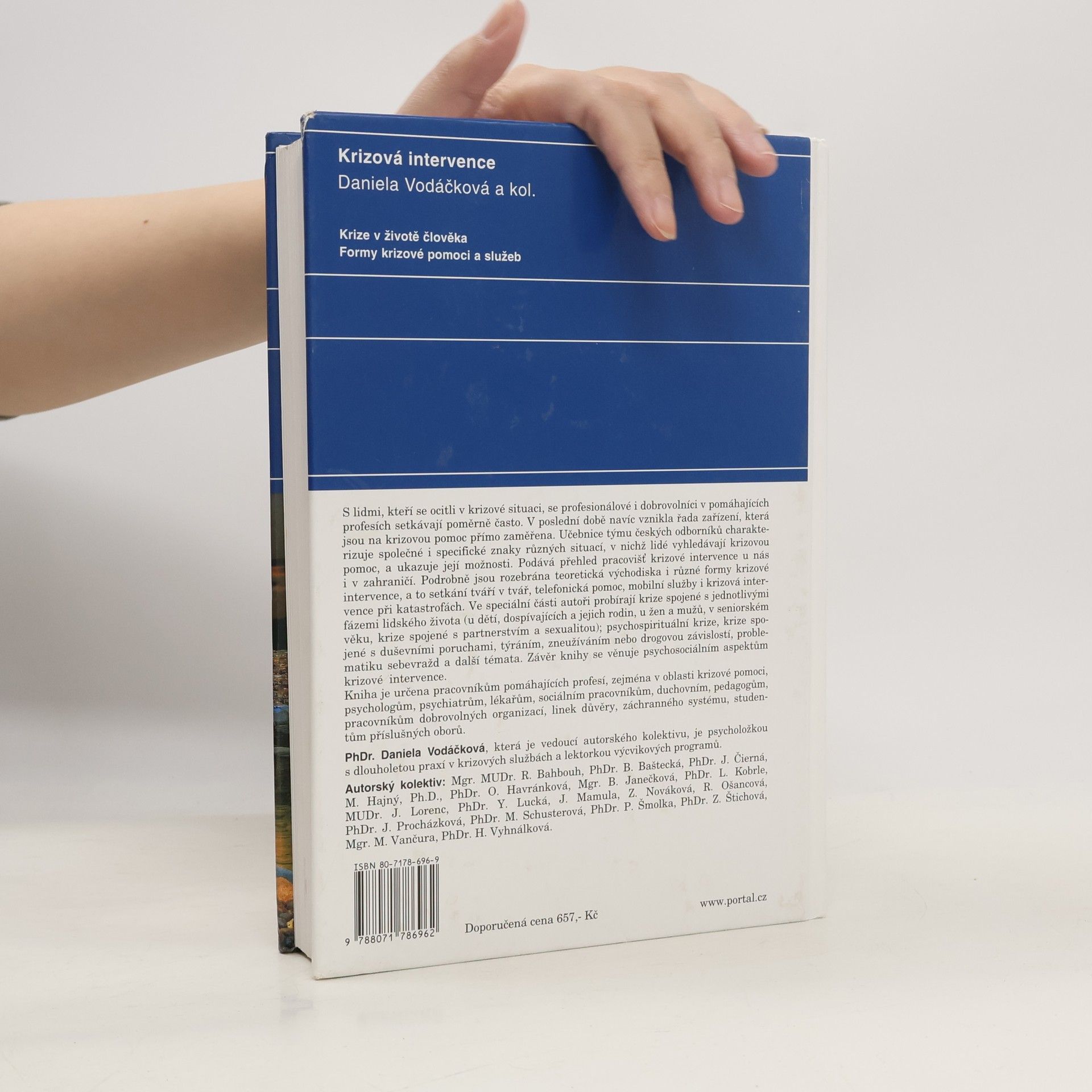 Lidem, kteří řeší naléhavou krizovou situaci, je dnes k dispozici řada různých zařízení, poskytujících krizovou pomoc, v nichž působí profesionálové i dobrovolníci. Publikace širokého autorského kolektivu shrnuje současný stav oboru, který je východiskem jejich práce, a popisuje základní postupy krizové intervence v nejrůznějších situacích. Úvodní část knihy charakterizuje společné znaky životních situací, v nichž lidé vyhledávají krizovou pomoc, a ukazuje možnosti odborné pomoci v krizi. Podává přehled pracovišť krizové intervence u nás i v zahraničí. Podrobně jsou rozebrána teoretická východiska i jednotlivé kroky různých forem a technik krizové intervence - tváří v tvář (s jednotlivcem, párem, skupinou); telefonická pomoc, mobilní služby (výjezd, práce v terénu) i krizová intervence při katastrofách. Ve speciální části autoři probírají hlavní typy krizových situací: krize spojené s jednotlivými fázemi lidského života (krizová intervence u dětí, dospívajících a jejich rodin, krizové situace u žen a mužů, v seniorském věku; krize spojené s partnerstvím, manželstvím a sexualitou); psychospirituální krize; krize spojené s duševními poruchami (klienti s poruchou osobnosti, s drogovou závislostí; týraní a zneužívaní klienti, problematika sebevražd). Závěr knihy se věnuje sociálně-právním aspektům krizové intervence