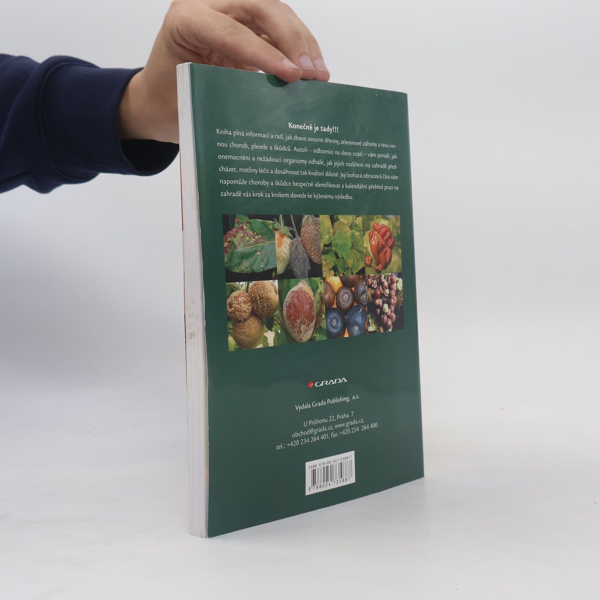 Zahrádkáři se každoročně potýkají s chorobami a škůdci na ovocných dřevinách a zelenině. Zejména jim je určená kniha, která je seznámí s racionální ochranou ovocných kultur, zeleniny a révy vinné. Tento přístup využívá preventivní i léčebná opatření bránící vzniku či rozšíření chorob a rozmnožení škůdců na zahradách a v sadech. Začínající i pokročilí pěstitelé zde najdou rady, jak mechanicky a pomocí biologických prostředků chránit dřeviny, maximum pozornosti však je věnováno cílené, ale šetrné ochraně chemické, včetně informací o přípravcích - o skladování, ředění, toxicitě a možnostech jejich vzájemné kombinace. Stěžejní část knihy se věnuje škůdcům a chorobám vyskytujícím se na zahradě, prevenci a léčbě napadených rostlin. Čtenáři zde najdou souhrnný přehled ochrany jednotlivých druhů ovoce, zeleniny a révy vinné v jednotlivých měsících.