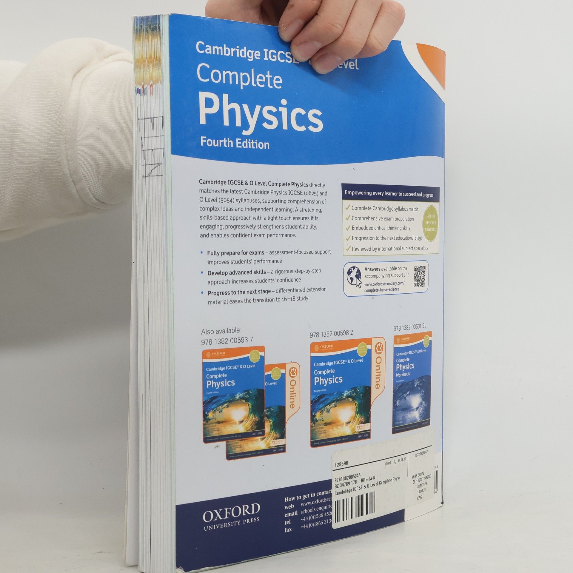 The Cambridge IGCSE® & O Level Complete Physics Student Book is at the heart of delivering the course. It has been fully updated and matched to the latest Cambridge IGCSE (0625) & O Level (5054) Physics syllabuses, ensuring it covers all the content that students need to succeed.The Student Book is written by Stephen Pople, experienced and trusted author of our previous, best-selling edition, and Anna Harris. It has been reviewed by subject experts globally to ensure it meets teachers' needs. The book offers a rigorous approach, with a light touch to make it engaging. Varied and flexible assessment-focused support and exam-style questions improve students' performance and help them to progress, while the enriching content equips them for further study.The Student Book is available in print, online or via a great-value print and online pack. The supporting Exam Success Guide and Practical Workbook help students achieve top marks in their exams, while the Workbook, for independent practice, strengthens exam potential inside and outside the classroom.