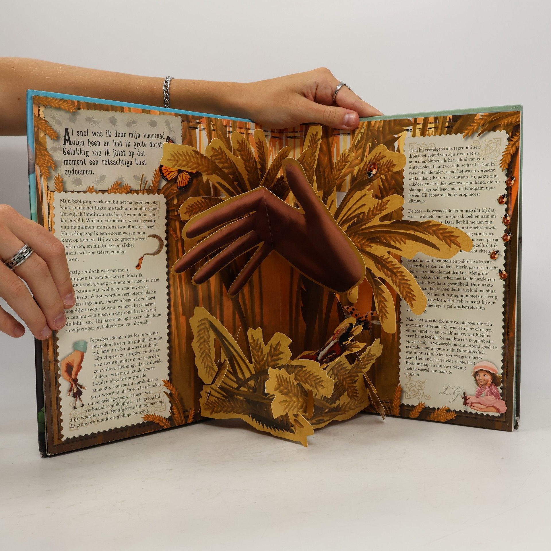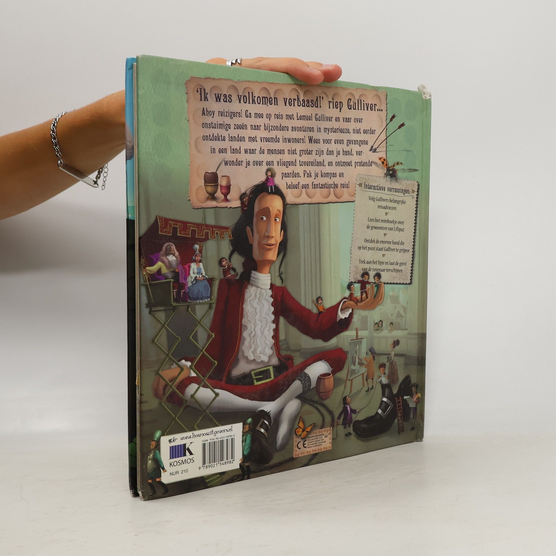Lemuel Gulliver vertelt over zijn reizen, waarin hij terechtkomt in Lilliput en bij reuzen, Met pop-up en flapjes. Vanaf ca. 9 jaar.