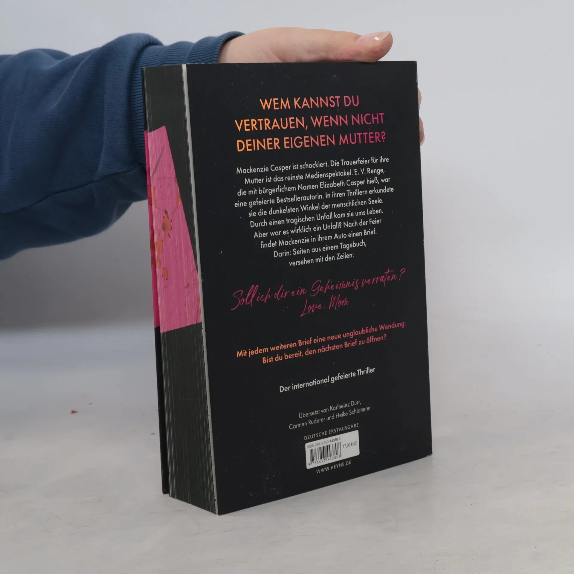 Wem kannst du vertrauen, wenn nicht deiner eigenen Mutter? Mit Farbschnitt in limitierter Erstauflage – Lieferung je nach Verfügbarkeit Studentin Mackenzie Casper hat stets im Schatten ihrer berühmten Mutter Elizabeth gelebt, einer der bekanntesten Thriller-Autorinnen der Welt. Doch jetzt ist Elizabeth tot. Mackenzie ist nicht die Einzige die Zweifel daran hat, dass es ein tragischer Unfall war. Auf der Trauerfeier erhält sie einen mysteriösen Brief mit Seiten aus dem Tagebuch ihrer Mutter. Weitere Briefe folgen. Hatte ihre Mom Geheimnisse, die sie das Leben kosteten? Um das herauszufinden, muss Mackenzie selbst Nachforschungen anstellen. Dabei darf sie niemandem trauen. Vor allem nicht ihrer Familie.