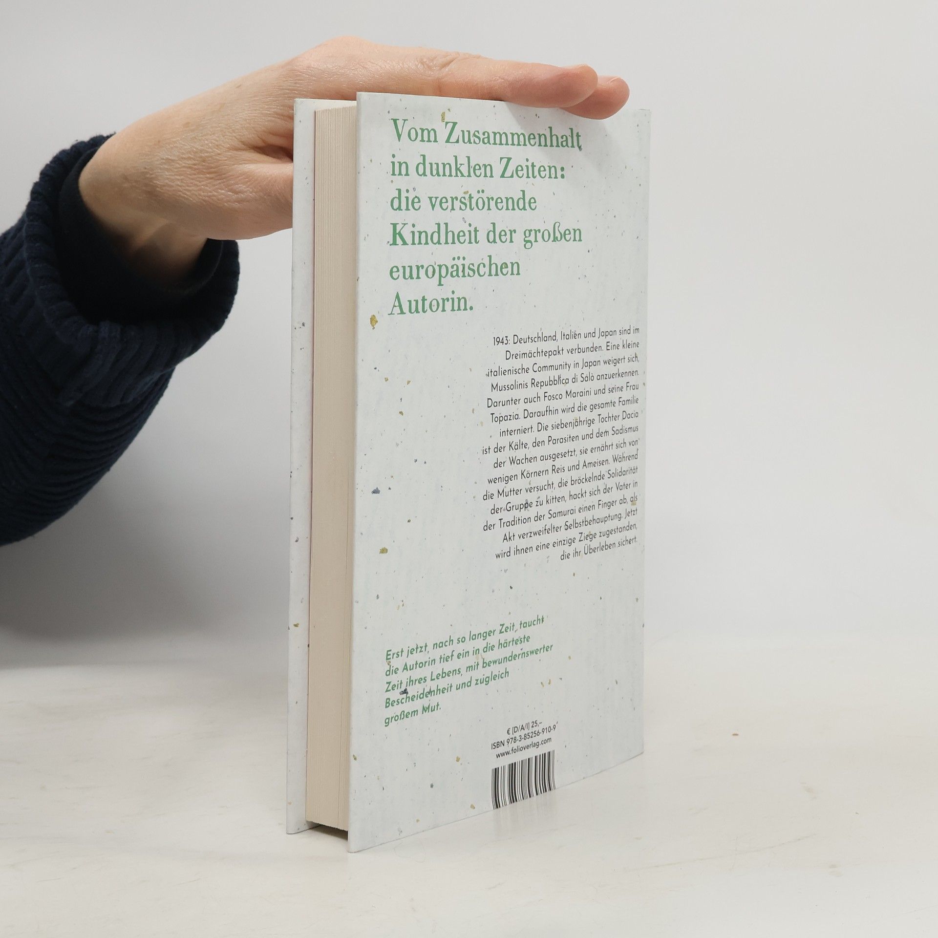 Wie viel kostet einmal Überleben? 1943: Deutschland, Italien und Japan sind im Dreimächtepakt verbunden. Eine kleine italienische Community in Japan weigert sich, Mussolinis Repubblica di Salò anzuerkennen. Darunter auch Fosco Maraini und seine Frau Topazia. Daraufhin wird die gesamte Familie interniert. Die siebenjährige Tochter Dacia ist der Kälte, den Parasiten und dem Sadismus der Wachen ausgesetzt, sie ernährt sich von wenigen Körnern Reis und Ameisen. Während die Mutter versucht, die bröckelnde Solidarität der Gruppe zu kitten, hackt sich der Vater in der Tradition der Samurai einen Finger ab, als Akt verzweifelter Selbstbehauptung. Jetzt wird ihnen eine einzige Ziege zugestanden, die ihr Überleben sichert. Vom Zusammenhalt in dunklen Zeiten: die verstörende Kindheit der großen europäischen Autorin.