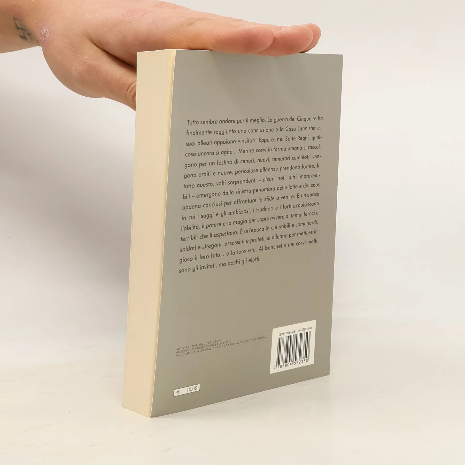 Tutto sembra andare per il meglio. La guerra dei Cinque re ha finalmente raggiunto una conclusione e la Casa Lannister e i suoi alleati appaiono vincitori. Eppure, nei Sette Regni, qualcosa ancora si agita... Mentre corvi in forma umana si raccolgono per un festino di ceneri, nuovi, temerari complotti vengono orditi e nuove, pericolose alleanze prendono forma. In tutto questo, volti sorprendenti - alcuni noti, altri imprevedibili - emergono dalla sinistra penombra delle lotte e del caos appena conclusi per affrontare le sfide a venire. È un'epoca in cui i saggi e gli ambiziosi, i traditori e i forti acquisiscono l'abilità, il potere e la magia per sopravvivere ai tempi feroci e terribili che li aspettano. È un'epoca in cui nobili e comunardi, soldati e stregoni, assassini e profeti, si alleano per mettere in gioco il loro fato... e la loro vita. Al banchetto dei corvi molti sono gli invitati, ma pochi gli eletti.