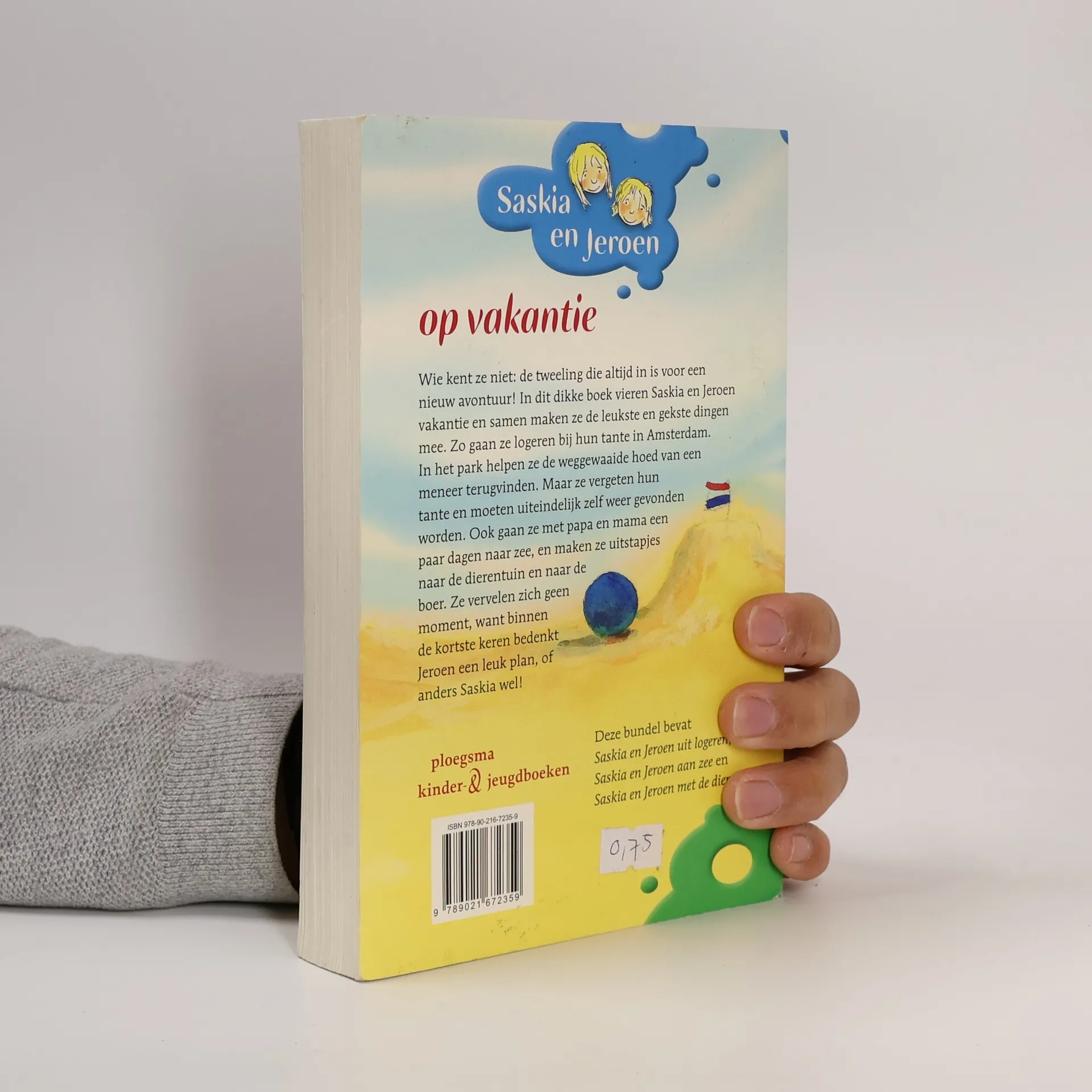 Wie kent ze niet: de tweeling die altijd in is voor een nieuw avontuur! In dit dikke boek vieren Saskia en Jeroen vakantie en samen maken ze de leukste en gekste dingen mee. Zo gaan ze logeren bij hun tante in Amsterdam. In het park helpen ze de weggewaaide hoed van een meneer terugvinden. Maar ze vergeten hun tante en moeten uiteindelijk zelf weer gevonden worden. Ook gaan ze met papa en mama een paar dagen naar zee, en maken ze uitstapjes naar de dierentuin en naar de boer. Ze vervelen zich geen moment, want binnen de kortste keren bedenkt Jeroen een leuk plan, of anders Saskia wel!