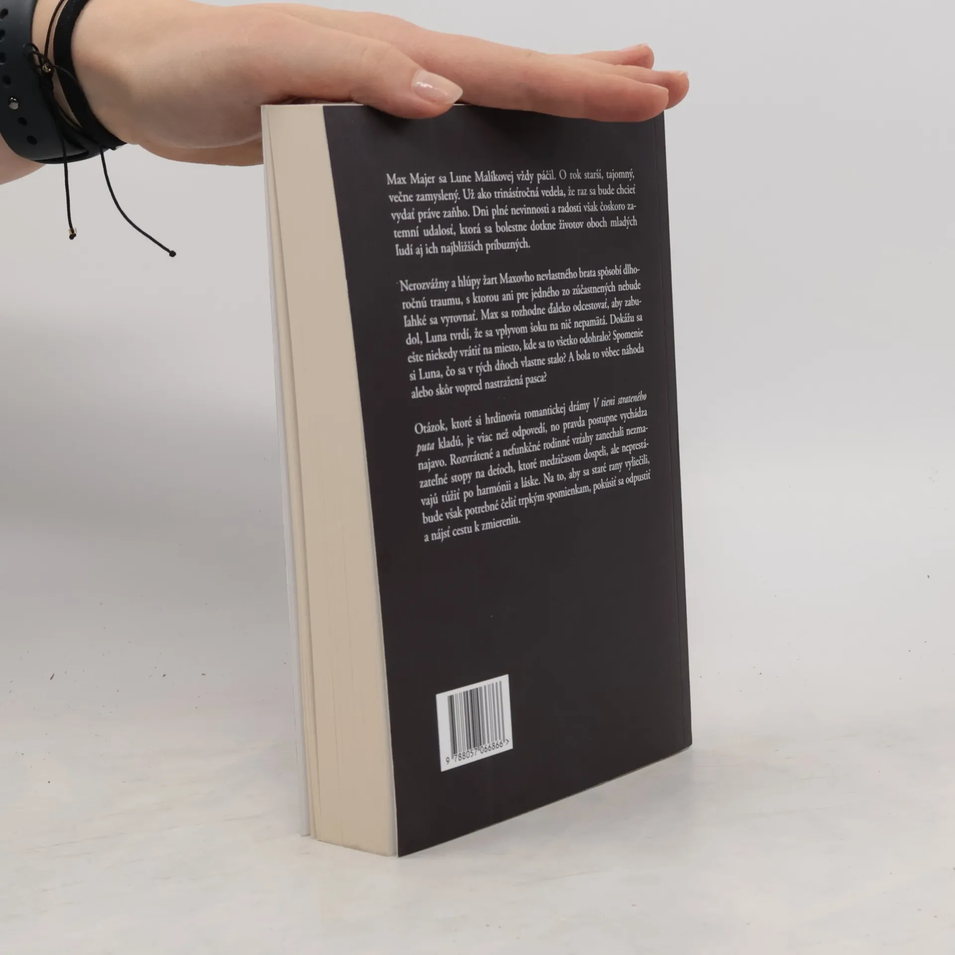 Max Majer sa Lune Malíkovej vždy páčil. O rok starší, tajomný, večne zamyslený. Už ako trinásťročná vedela, že raz sa bude chcieť vydať práve zaňho. Dni plné nevinnosti a radosti však čoskoro zatemní udalosť, ktorá sa bolestne dotkne životov oboch mladých ľudí aj ich najbližších príbuzných.Nerozvážny a hlúpy žart Maxovho nevlastného brata spôsobí dlhoročnú traumu, s ktorou ani pre jedného zo zúčastnených nebude ľahké sa vyrovnať. Max sa rozhodne ďaleko odcestovať, aby zabudol, Luna tvrdí, že sa vplyvom šoku na nič nepamätá. Dokážu sa ešte niekedy vrátiť na miesto, kde sa to všetko odohralo? Spomenie si Luna, čo sa v tých dňoch vlastne stalo? A bola to vôbec náhoda alebo skôr vopred nastražená pasca?Otázok, ktoré si hrdinovia romantickej drámy V tieni strateného puta kladú, je viac než odpovedí, no pravda postupne vychádza najavo. Rozvrátené a nefunkčné rodinné vzťahy zanechali nezmazateľné stopy na deťoch, ktoré medzičasom dospeli, ale neprestávajú túžiť po harmónii a láske. Na to, aby sa staré rany vyliečili, bude však potrebné čeliť trpkým spomienkam, pokúsiť sa odpustiť a nájsť cestu k zmiereniu.