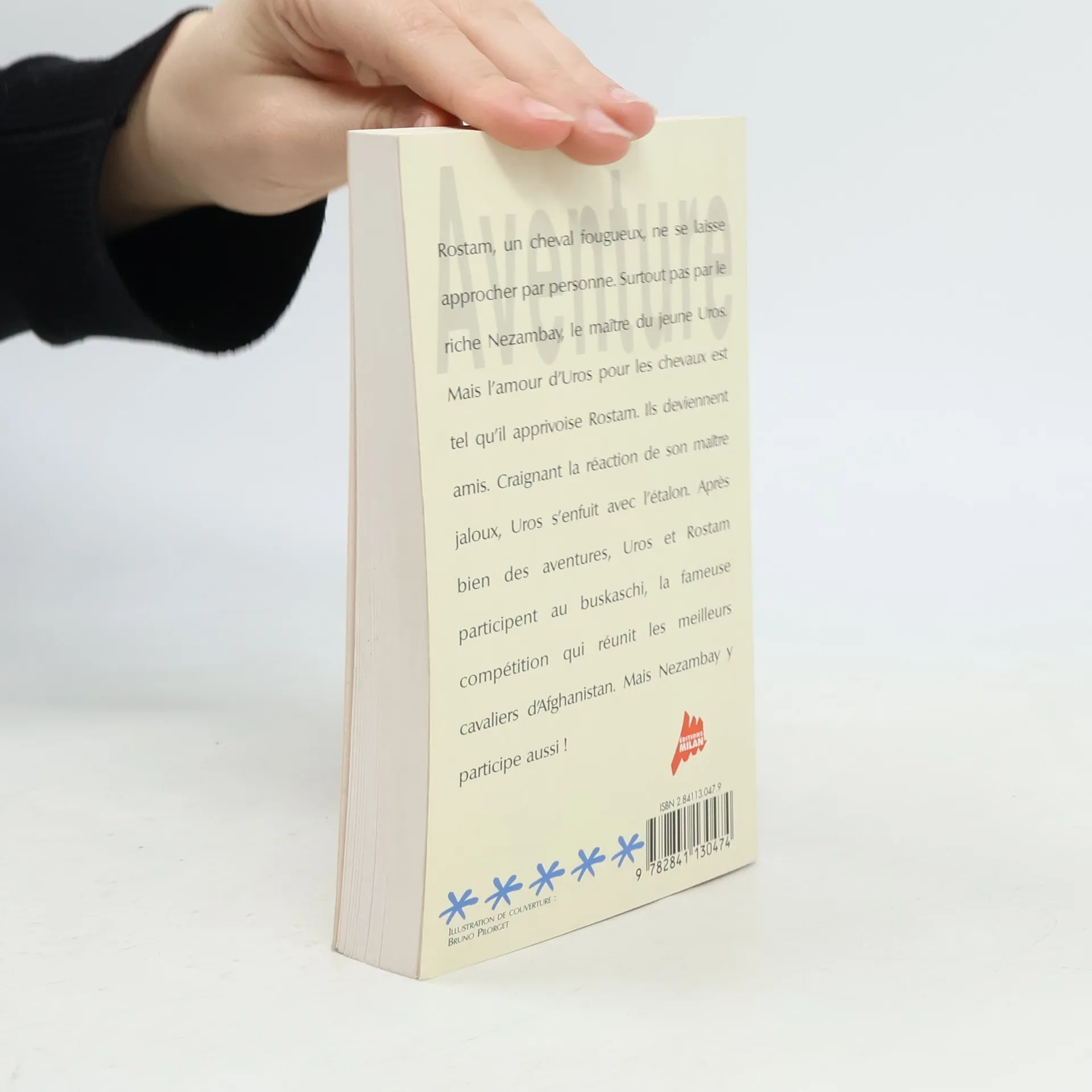 L'éditeur indique : Rostam, un cheval fougueux, ne se laisse approcher par personne. Surtout pas par le riche Nézambay, le maître du jeune Uros. Mais l'amour d'Uros pour les chevaux est tel qu'il apprivoise Rostam, et ils deviennent des amis. Craignant la réaction de son maître jaloux, Uros s'enfuit avec l'étalon, pour le sauver de la colère de Nézambay. Après bien des aventures, Uros et Rostam participent au Buskaschi, la fameuse et dangereuse compétition qui réunit les meilleurs cavaliers d'Afghanistan.