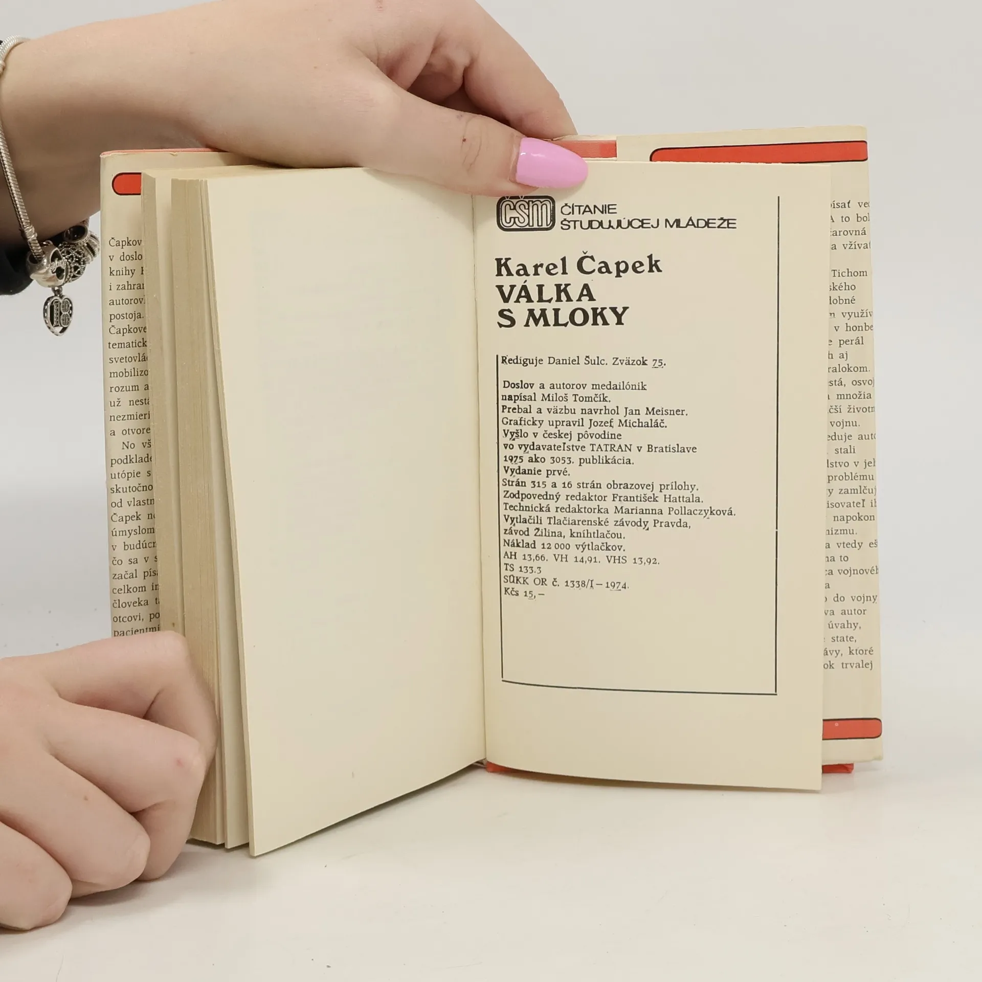 Kapitán Van Toch objeví na ostrově Tana Masa v Tichém oceánu podivné, inteligentní, v moři žijící tvory, podobné mlokům. Zahájí s nimi výměnný obchod: kapitán Vantoch dodá mlokům nože na obranu proti žralokům, kteří mločí populaci decimují, a mloci na oplátku budou nosit kapitánu Vantochovy perly. Seznámí s tímto projektem svého přítele z dětství, továrníka G. H. Bondyho, který začne mlokům dodávat i jiné potřeby. Kapitán Vantoch mezitím vysazuje mloky i na jiných ostrovech Tichého oceánu. Po smrti kapitána Vantocha se začne s mloky obchodovat jako s levnou pracovní silou, jsou také podrobeni vědeckému průzkumu, z něhož vyjde najevo, že se jedná o druh Andrias scheuzeri, miocénního ještěra, u kterého se předpokládalo vyhynutí. Mloci se ale přemnoží, vzbouří, začnou mezi sebou válčit a požadovat více životního prostoru a z toho důvodu (Mloci mohou žít pouze v moři) je nutné vybourat pevniny..! Válka s mloky alegoricky ukazuje na nebezpečí fašismu a ohrožení evropské demokracie. Vyšlo v češtině ve vydavatelství TATRAN Bratislava. Doslov a autorov medailónik napísal Miloš Tomčík. 316 stran a 16 stran obrazovej prílohy.