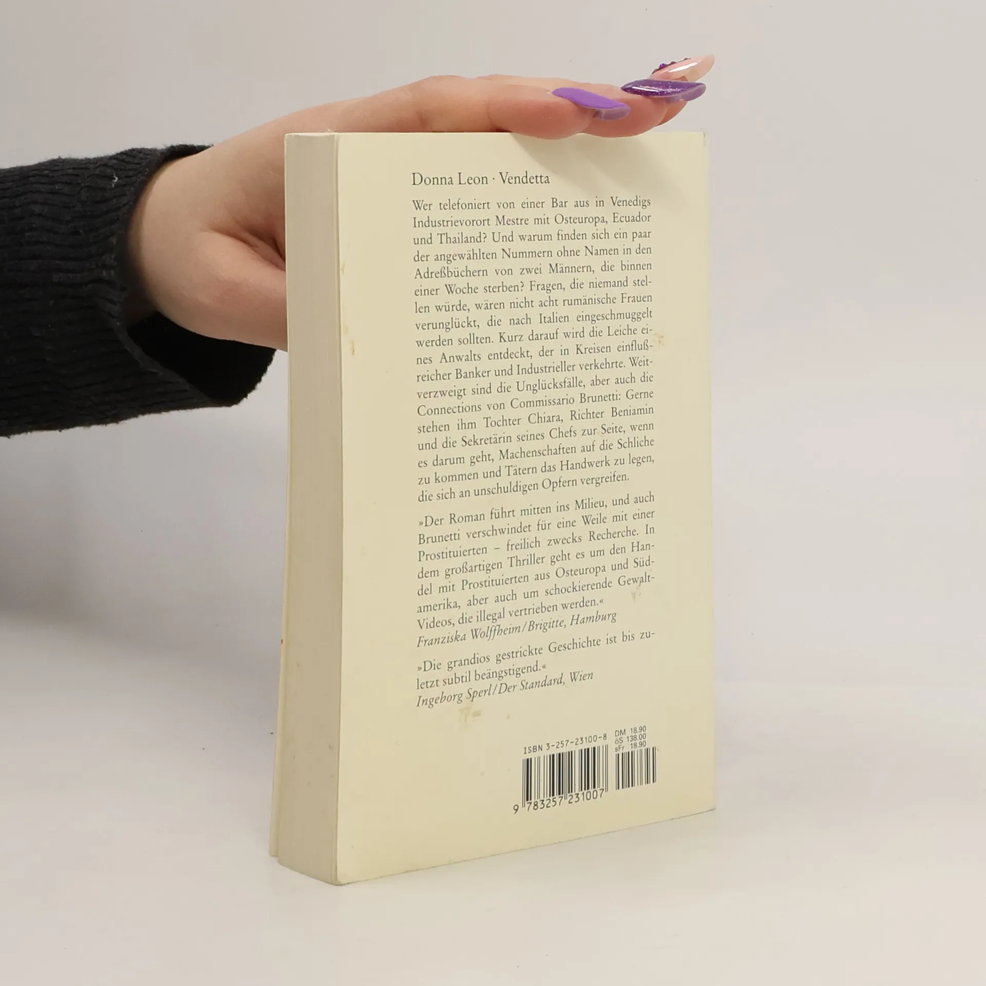 Niemand hätte wohl je erfahren, warum jemand von einer venezianischen Bar aus in die ganze Welt telefoniert; und warum einige der angewählten Nummern in den Adreßbüchern zweier Männer stehen, die binnen einer Woche sterben; wären nicht acht rumänische Frauen verunglückt, die nach Italien geschmuggelt werden sollten. Dieser Fall führt Commissario Brunetti tief in die Unterwelt Venedigs. "