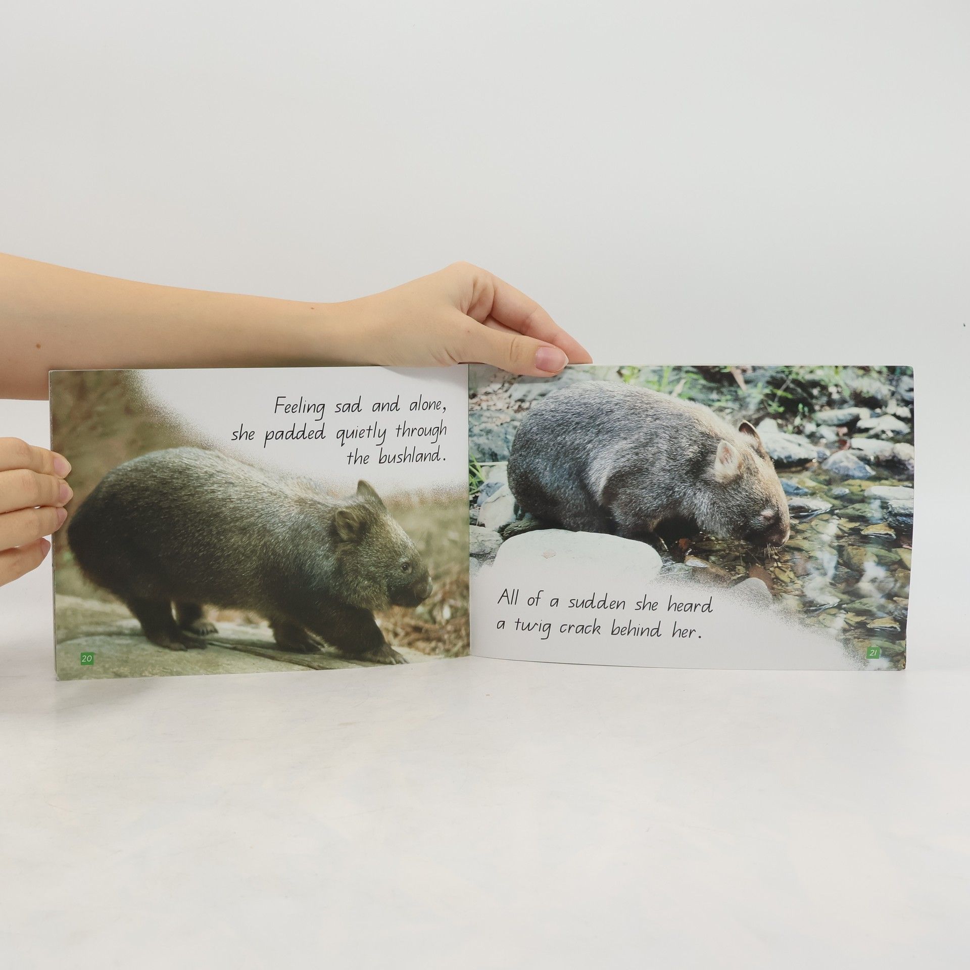 In Wombat's Friend, the wombat we met in Wombat's Secret is told she's strange because of her friendship with the wallaby. She must work out what is important to her the opinions of others, or her friendship.There are three species of wombat the common wombat (the main character in this story and the wombat who falls asleep are both common wombats), the southern hairy-nosed wombat (like the wombat who calls her strange), and the rare northern hairy-nosed wombat.