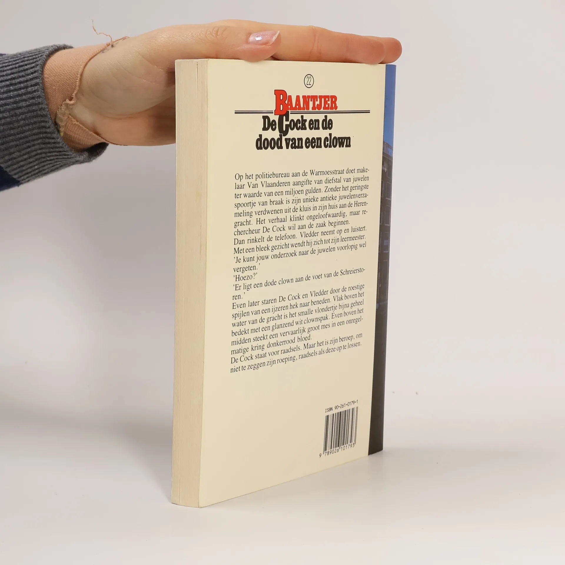Op het politiebureau aan de Warmoesstraat doet makelaar Van Vlaanderen aangifte van diefstal van juwelen ter waarde van een miljoen gulden. Zonder het geringste spoortje van braak is zijn unieke antieke juwelenverzameling verdwenen uit de kluis in zijn huis aan de Herengracht. Het verhaal klinkt ongeloofwaardig, maar rechercheur De Cock wil aan de zaak beginnen. Dan rinkelt de telefoon. Vledder neemt op en luistert. Met een bleek gezicht wendt hij zich tot zijn leermeester. 'Je kunt jouw onderzoek naar de juwelen voorlopig wel vergeten'. 'Hoezo?' ' Er ligt een dode clown aan de voet van de Schreierstoren.' Even later staren De Cock en Vledder door de roestige spijlen van een ijzeren hek naar beneden. Vlak boven het water van de gracht is het smalle vlondertje bijna geheel bedekt met een glanzend wit clownspak. Even boven het midden steekt een vervaarlijk groot mes in een onregelmatige kring donkerrood bloed. De Cock staat voor raadsels. Maar het is zijn beroep, om niet te zeggen zijn roeping, raadsels als deze op te lossen.