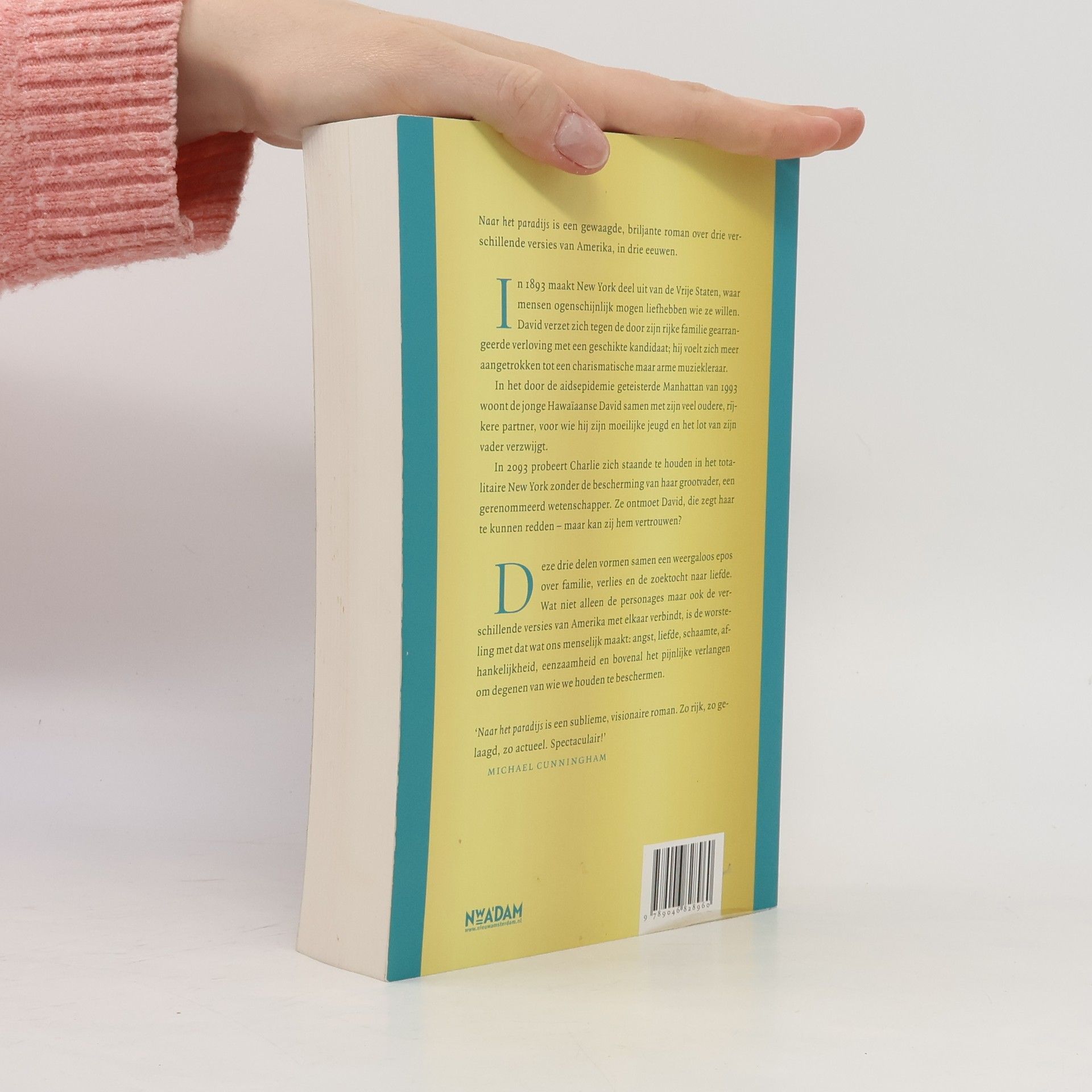 Naar het paradijs is een gewaagde, briljante roman over drie verschillende versies van Amerika, in drie eeuwen.In 1893 maakt New York deel uit van de Vrije Staten, waar mensen ogenschijnlijk mogen liefhebben wie ze willen. David verzet zich tegen de door zijn rijke familie gearrangeerde verloving met een geschikte kandidaat; hij voelt zich meer aangetrokken tot een charismatische maar arme muziekleraar.In het door de aidsepidemie geteisterde Manhattan van 1993 woont de jonge Hawaïaanse David samen met zijn veel oudere, rijkere partner, voor wie hij zijn moeilijke jeugd en het lot van zijn vader verzwijgt.In 2093 probeert Charlie zich staande te houden in het totalitaire New York zonder de bescherming van haar grootvader, een gerenommeerd wetenschapper. Ze ontmoet David, die zegt haar te kunnen redden - maar kan zij hem vertrouwen?Deze drie delen vormen samen een weergaloos epos over familie, verlies en de zoektocht naar liefde. Wat niet alleen de personages, maar ook de verschillende versies van Amerika met elkaar verbindt, is de worsteling met de eigenschappen die ons menselijk maken: angst, liefde, schaamte, afhankelijkheid, eenzaamheid en bovenal het pijnlijke verlangen om degenen van wie we houden te beschermen.