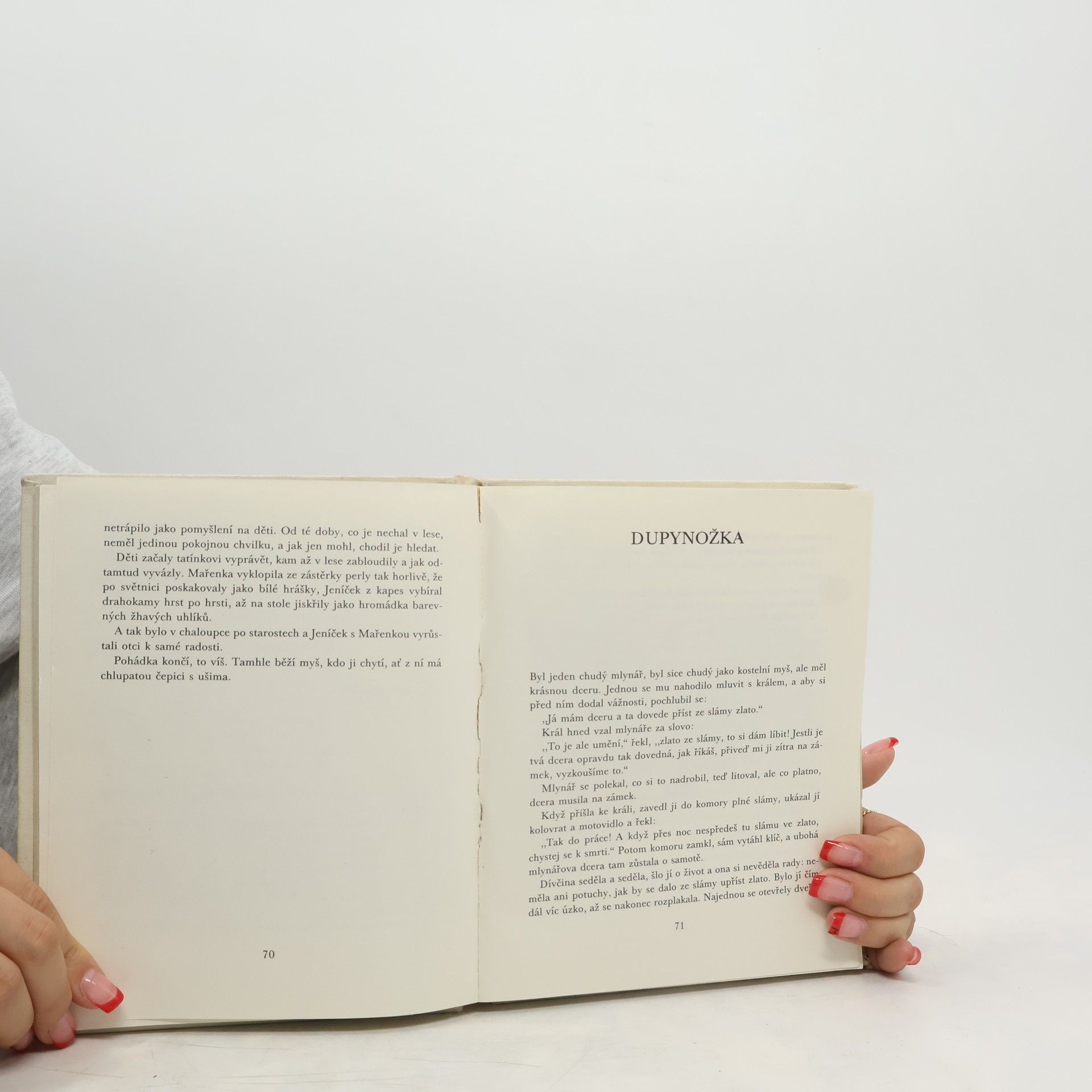 Kniha obsahuje následující pohádky: Sladká kaše; O vlkovi a kozlátkách; Červená Karkulka; Veška a bleška; Střízlík králem; Když se spolčí kočka s myší; O králi žabákovi; O bílém hadu; Tři přadleny; Šípková Růženka; Domácí skřítkové; Jeníček a Mařenka; Dupynožka; Zlatá husa; Kubík a Kačenka; Husopaska; Ó radostné cestování; O ptáku Nohovi; Bělinka a Růženka; Lesní šedivec; Podkovák; Vřetánko, člunek a jehla; Líný Mates; Dary skřítků; Čert a jeho babička; Jednoočka, Dvojočka a Trojočka; Sedm Švábů; Modrý kahanec; Brémští muzikanti.