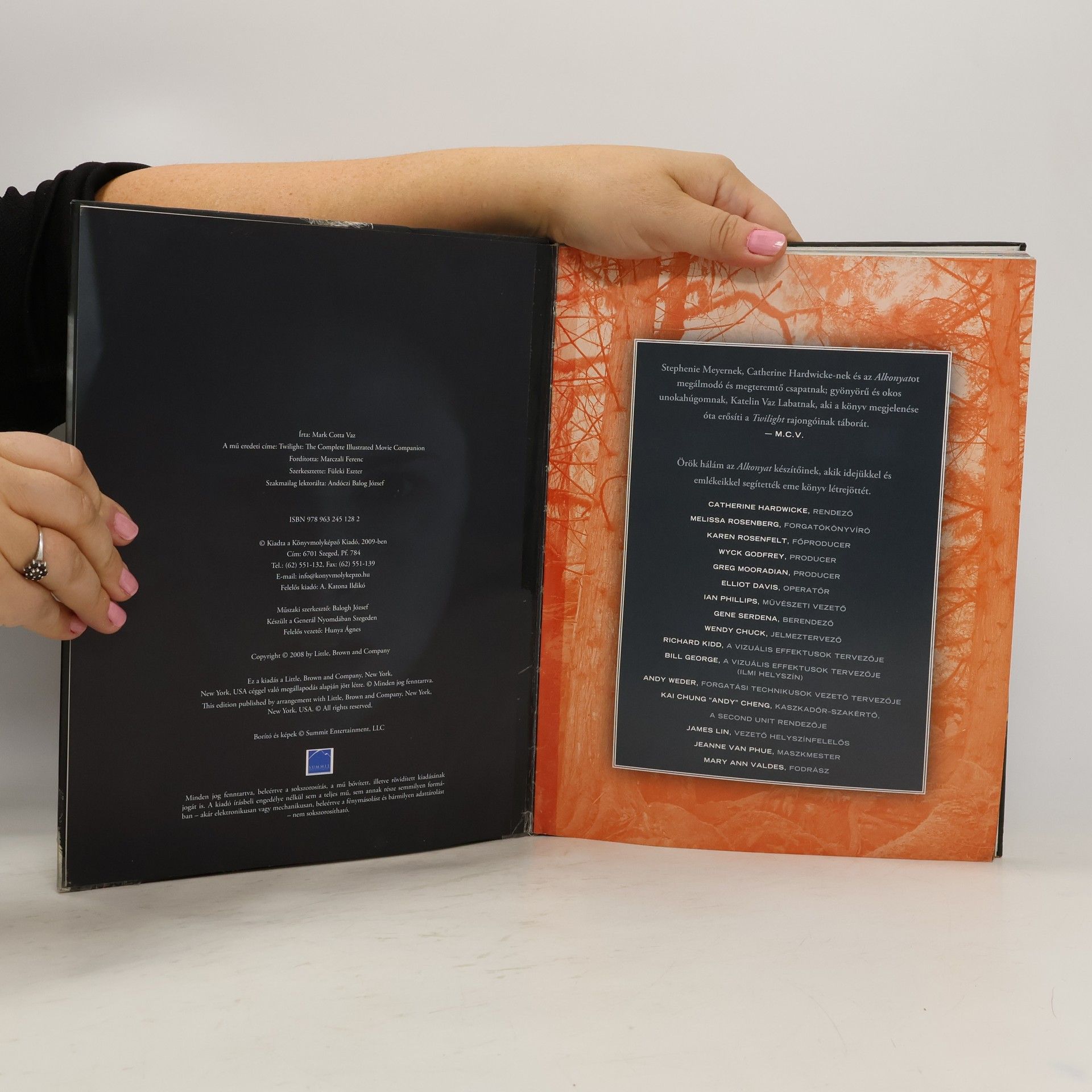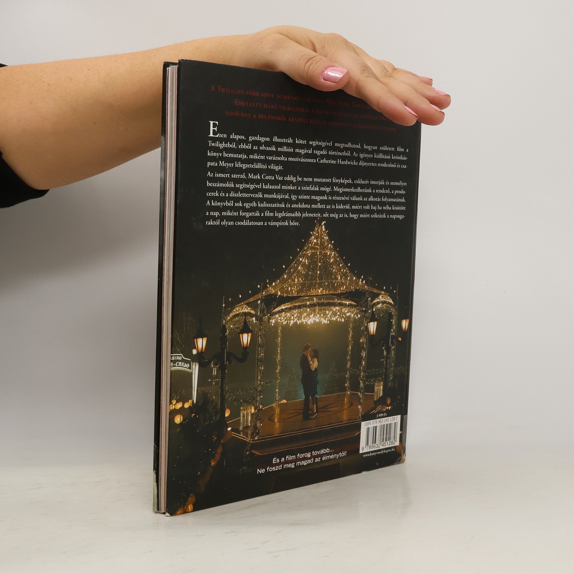 Stephenie Meyer regénye több mint 30 hétig vezette a New York Times bestseller-listáját. Emellett elmondható, hogy mára világszerte igazi kulturális jelenséggé vált. 2008-ban a Twilight saga első részéből nagysikerű filmet forgattak. Az alapos, gazdagon illusztrált kötet segítségével megtudhatod, hogyan született film az Alkonyatból, ebből az olvasók millióit magával ragadó történetből. Az igényes kiállítású krónikáskönyv bemutatja, miként varázsolta mozivászonra Catherine Hardwicke díjnyertes rendezőnő és csapata Meyer lélegzetelállító világát. Az ismert szerző, Mark Cotta Vaz eddig be nem mutatott fényképek, exkluzív interjúk és személyes beszámolók segítségével kalauzol minket a színfalak mögé. Megismerkedhetünk a rendező, a producerek és a díszlettervezők munkájával, így szinte magunk is részesévé válunk az alkotás folyamatának. A könyvből sok egyéb kulisszatitok és anekdota mellett az is kiderül, hogyan született meg a Cullen család címere, miként forgatták a film legdrámaibb jeleneteit, sőt még az is, hogy miért szikrázik a napsugaraktól olyan csodálatosan a vámpírok bőre. És a film forog tovább…