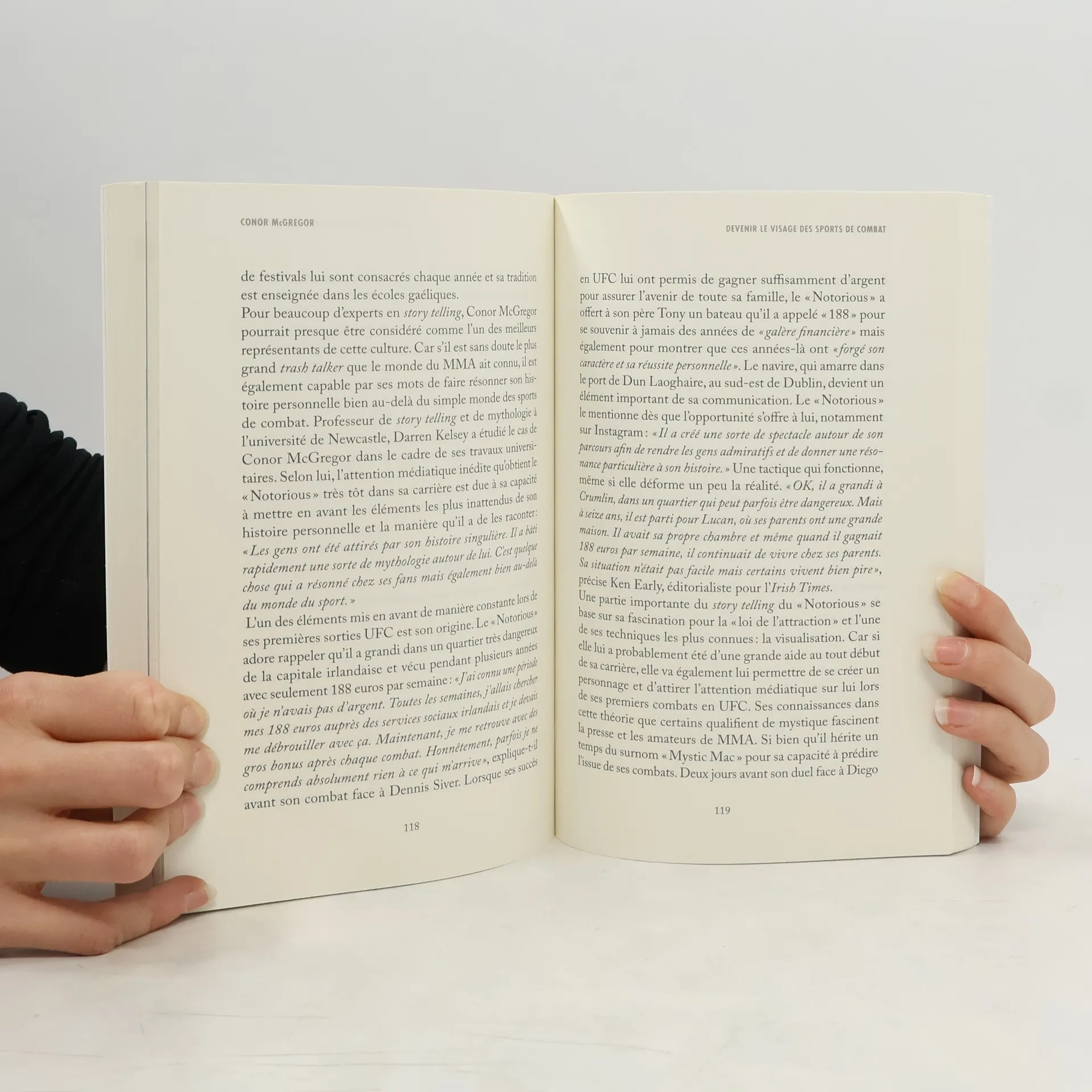 Connu pour son trash talking, son talent pour la provocation, ses frasques spectaculaires et sa personnalité atypique, Conor McGregor fascine bien au-delà du monde du sport. Arrivé en 2013 en UFC, l'organisation la plus prestigieuse de l'univers du MMA, il ne lui a fallu que trois ans pour devenir le premier combattant à détenir simultanément deux ceintures UFC dans deux catégories différentes. En 2017, le « Notorious » change encore de dimension en osant défier Floyd Mayweather sur un ring de boxe, dans un duel resté célèbre sous le surnom de « combat du siècle ». Aujourd'hui à la tête de sa propre entreprise de whiskey, il tente ce qui est peut-être son pari le plus audacieux : redevenir le roi de l'octogone. À travers des témoignages exclusifs recueillis à Dublin, dans le quartier de son enfance, auprès de ses premières connaissances et de ses premiers adversaires, ce livre tente de comprendre comment Conor McGregor est devenu en quelques années l'Irlandais le plus célèbre de la planète et le visage le plus emblématique des sports de combat.