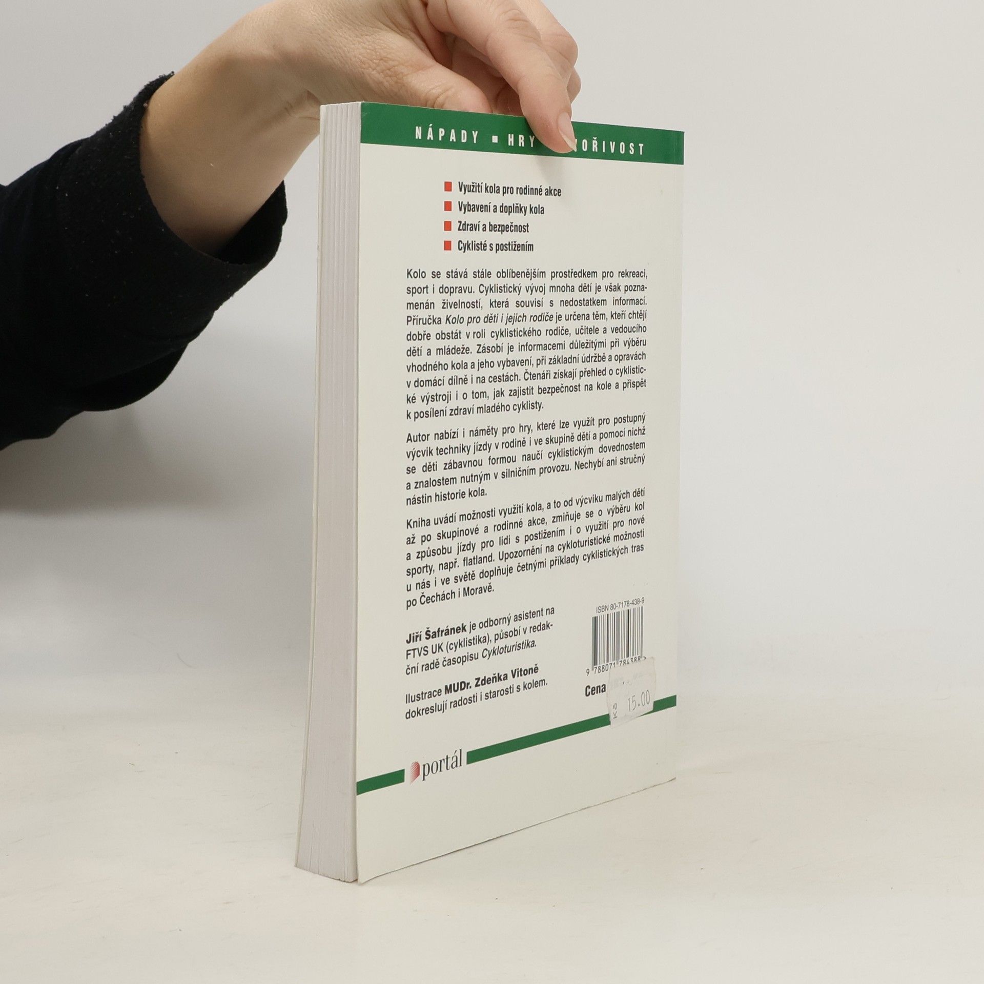 Tato příručka je určena těm, kteří chtějí dobře obstát v roli cyklistického rodiče. Zásobí je informacemi důležitými při výběru vhodného kola a jeho vybavení, o základní údržbě a opravách doma i na cestě. Získáte přehled o cyklistické výstroji i bezpečnosti. Četné příklady cyklistických tras po Čechách.