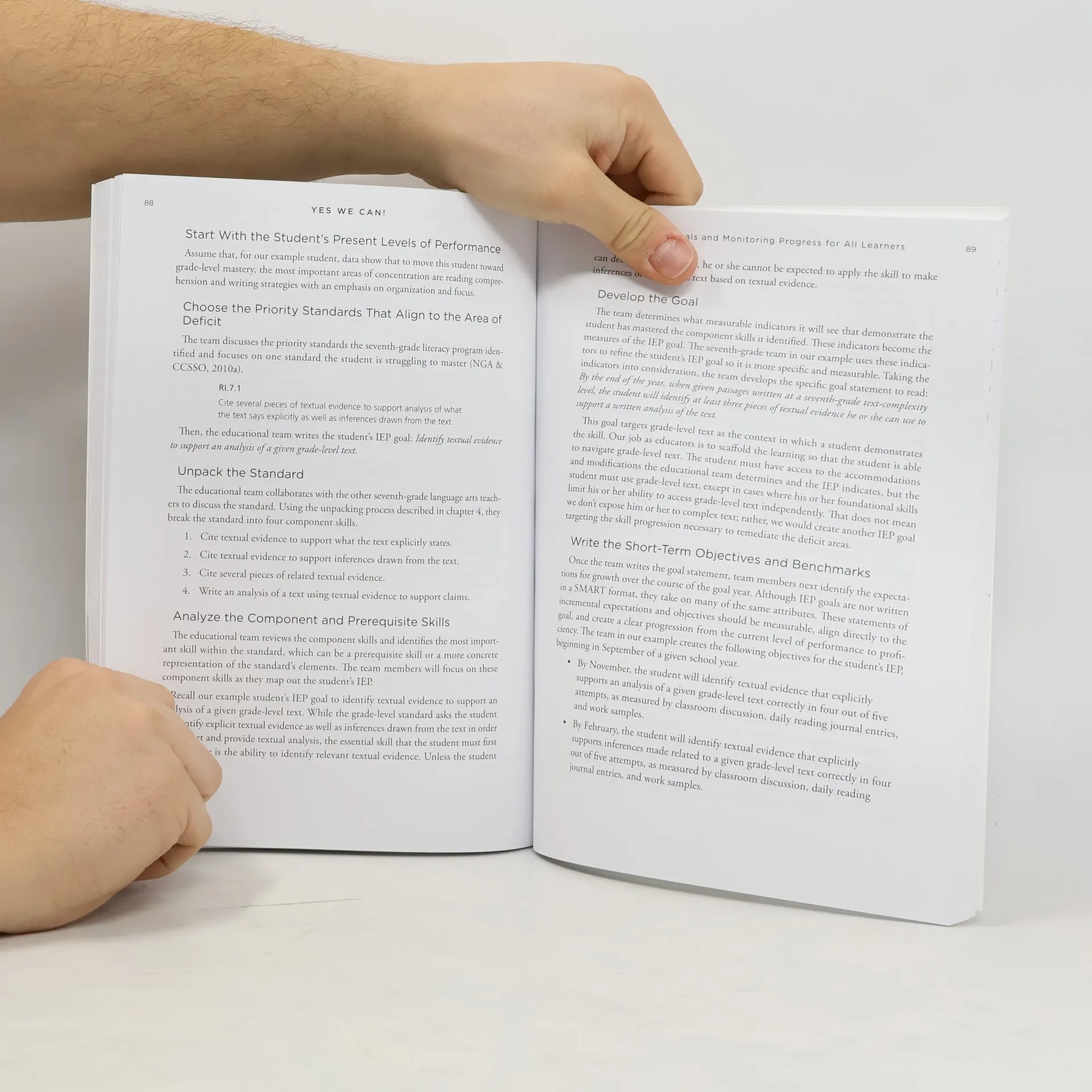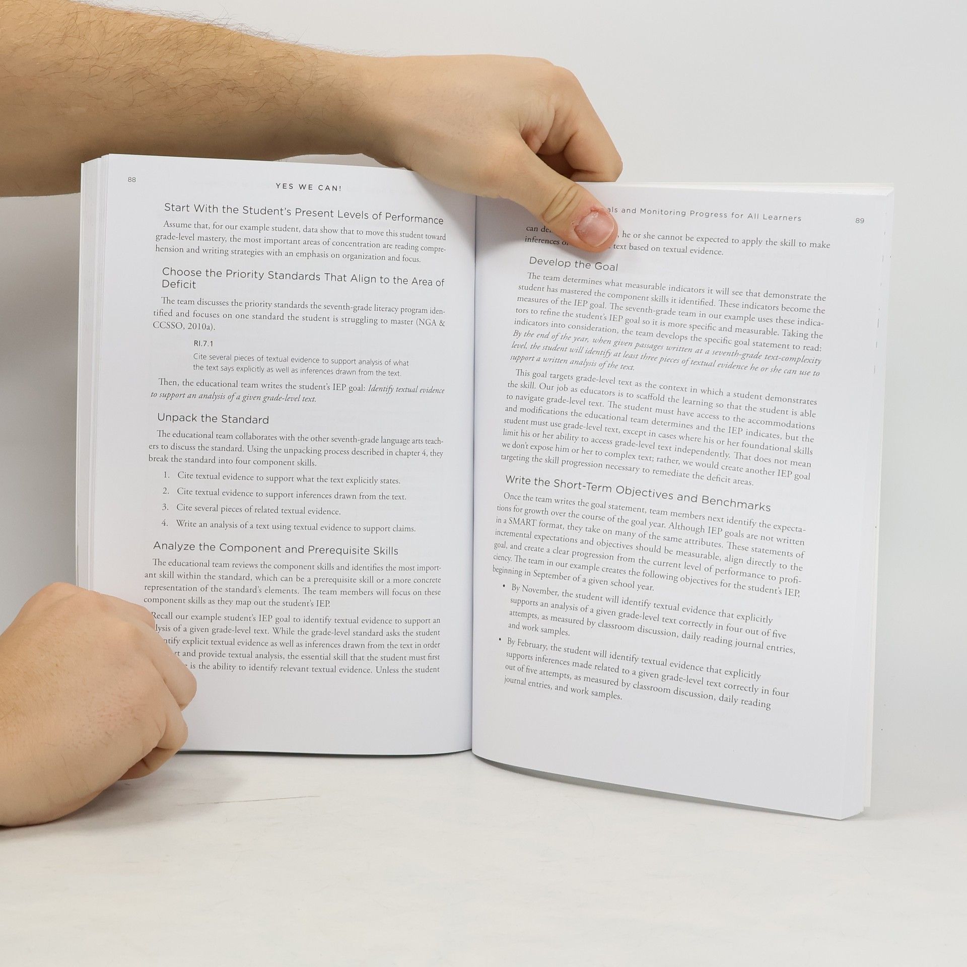 As states adopt more rigorous academic standards, schools must define how special education fits into standards-aligned curricula, instruction, and assessment. Utilizing PLC practices, general and special educators must develop collaborative partnerships in order to close the achievement gap and maximize learning for all. The authors encourage all educators to take collective responsibility in improving outcomes for students with special needs.