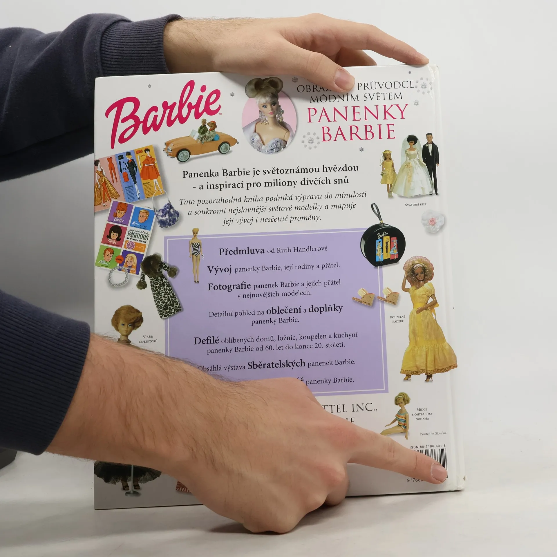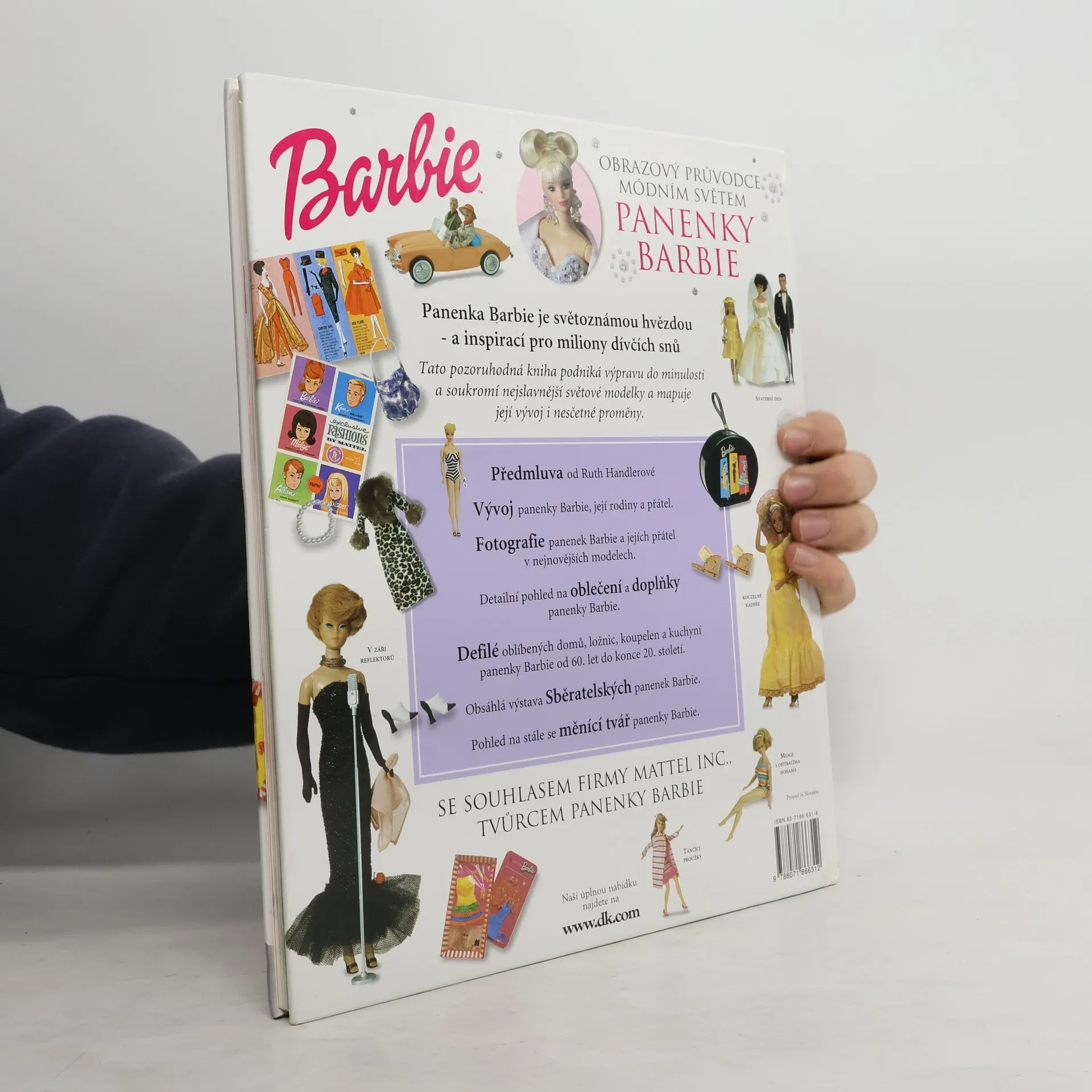 Tato pozoruhodná kniha podniká výpravu do minulosti a soukromí nejslavnější světové modelky a mapuje její vývoj i nesčetné proměny. Vydáno se souhlasem firmy MATTEL INC., tvůrcem panenky Barbie. HLAVNÍ VÝTVARNÝ REDAKTOR: Lisa Lanzarini HLAVNÍ REDAKTORKA: Marie Greenwood GRAFICKÝ NÁVRH: Laia Roses REDAKTORKA KONZULTACÍ: Jacqueline Jackson HLAVNÍ VÝTVARNICE: Jacquie Gulliver HLAVNÍ REDAKTORKA: Karen Dolan ZLOM: Jill Bunyan a Andrew O´Brien VÝROBA: Jo Rooke a Nicola Torode PORADCI: Carol Spencer a Robert Opie TEXT: Marie Greenwood, Jacqueline Jackson, Robert Opie a Carol Spencer