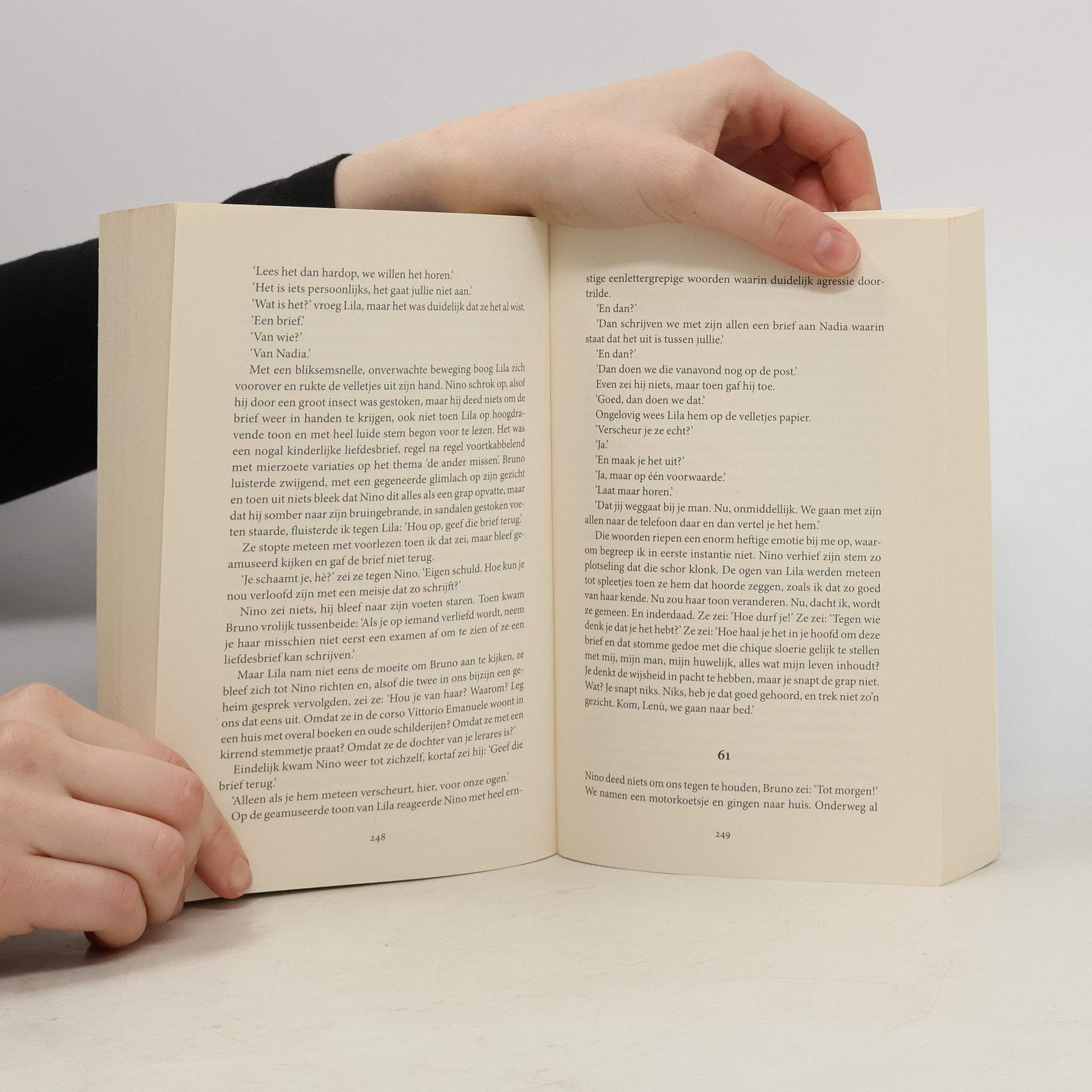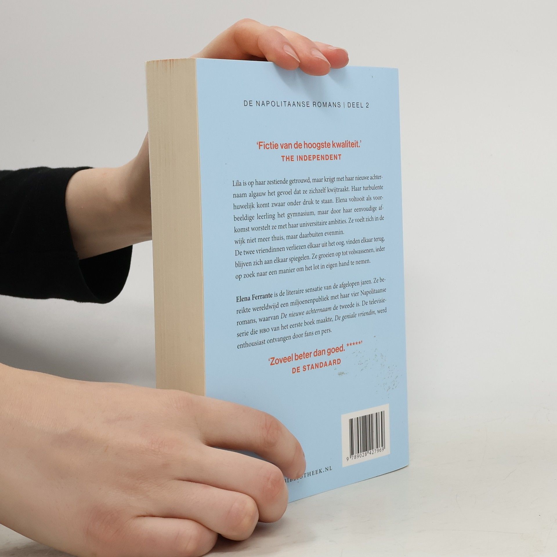 Deel 2 van de Napolitaanse romans: turbulent en verslavend In De nieuwe achternaam volgen we het leven van Lila en Elena, twee vriendinnen uit een armoedige wijk in Napels. Lila is op haar zestiende getrouwd, maar krijgt met haar nieuwe achternaam algauw het gevoel dat ze zichzelf kwijtraakt. Haar turbulente huwelijk komt zwaar onder druk te staan. Elena voltooit als voorbeeldige leerling het gymnasium, maar door haar eenvoudige afkomst worstelt ze met haar universitaire ambities. Ze voelt zich in de wijk niet meer thuis, daarbuiten evenmin. De twee vriendinnen verliezen elkaar uit het oog, vinden elkaar terug, blijven zich aan elkaar spiegelen. Ferrante laat zien hoe Lila en Elena, die we zagen opgroeien in De geniale vriendin, deel 1 van de Napolitaanse romans, volwassen worden, beiden op zoek naar een manier om hun lot in eigen hand te nemen.