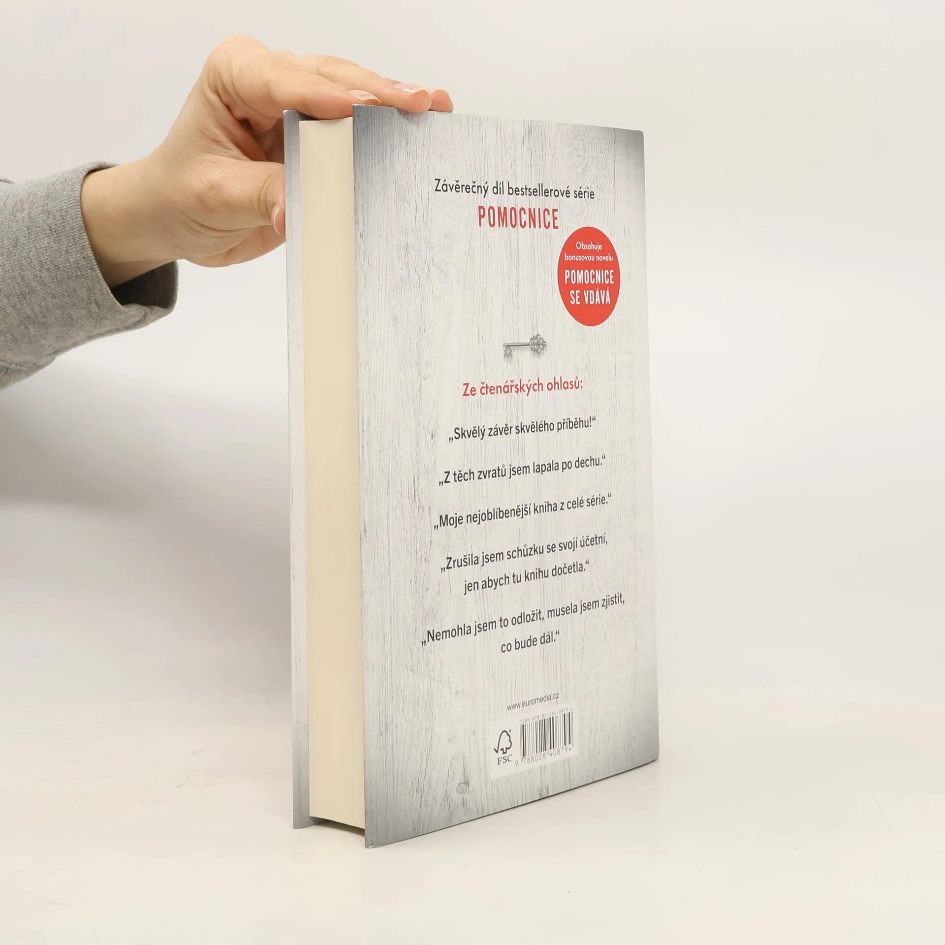 Třetí díl mrazivé série Pomocnice s bonusovou novelou! Má minulost už je dávno za mnou. A já udělám vše pro to, aby to tak zůstalo… Dřív jsem se starala o cizí domy a rodiny, teď mám vlastní krásný domov s velkou zahradou, kde si mohou hrát mé děti. Když nás pozve na večeři nová sousedka, dveře nám otevře její služebná v bílé zástěře a s vlasy staženými do pevného drdolu. Přesně vím, jaké to je být na jejím místě. Jenže její chladný pohled mě děsí… A to není jediná podivná věc v naší ulici. Mám pocit, že nás někdo pozoruje. Můj manžel se pozdě v noci vytrácí z domu. A když potkám ženu odnaproti, je jasné, co se mi snaží říct: Dávejte si pozor na své sousedy.