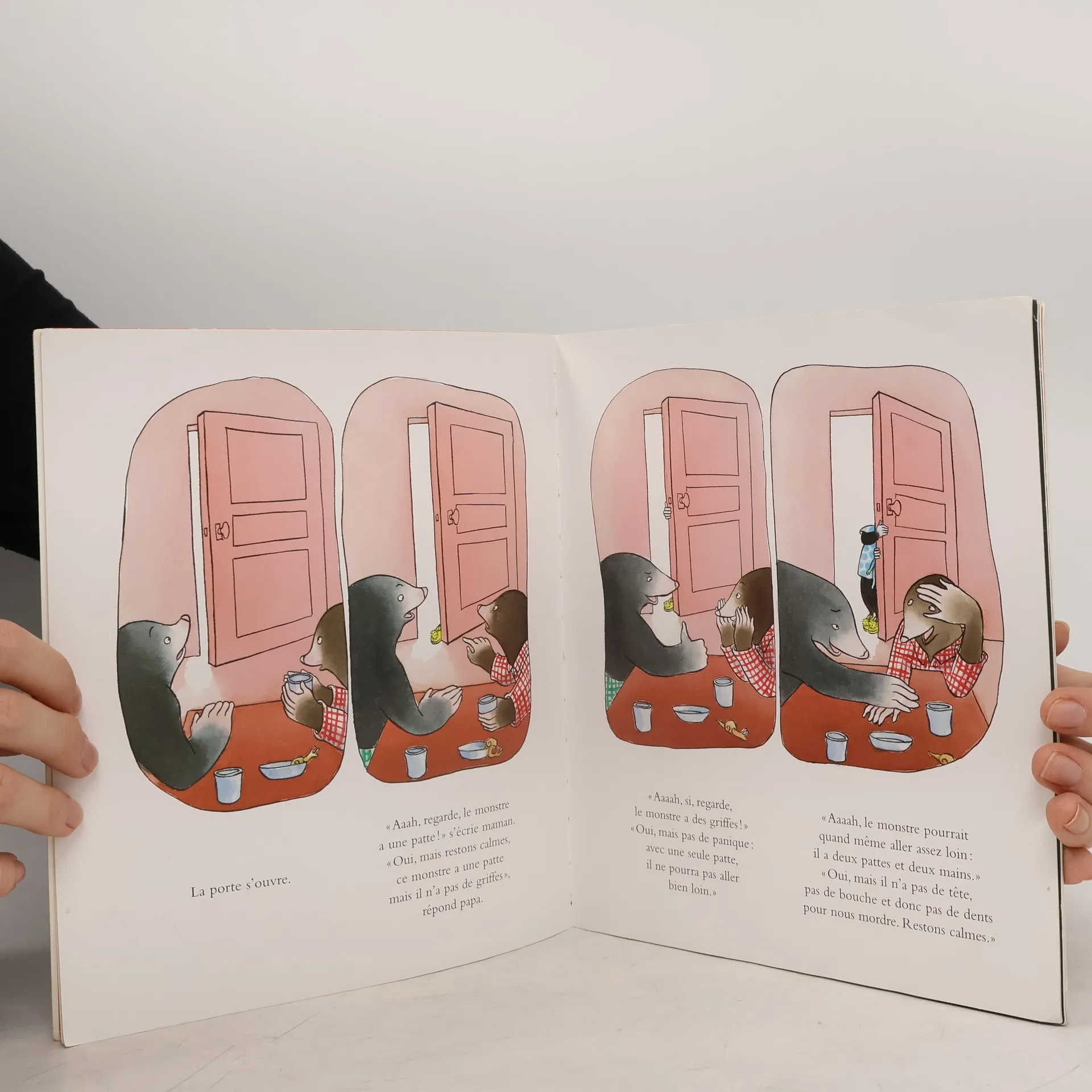 Papa et Maman Taupe prennent tranquillement leur petit djeuner quand on gratte la porte. Crich chrach ! Une patte se glisse par l'ouverture et une voix dit : " Je ne veux pas aller l'cole ! - Pas grave ! rpondent Papa et Maman. De toute faon, l'cole, ils n'acceptent pas les petits monstres du matin. Celui-ci n'a qu' garder la maison en notre absence. " Et ils s'en vont. Voil Louise bien embte. Quand tout coup, on gratte la porte et une voix dit : " Nous sommes les grands monstres du dehors "...
