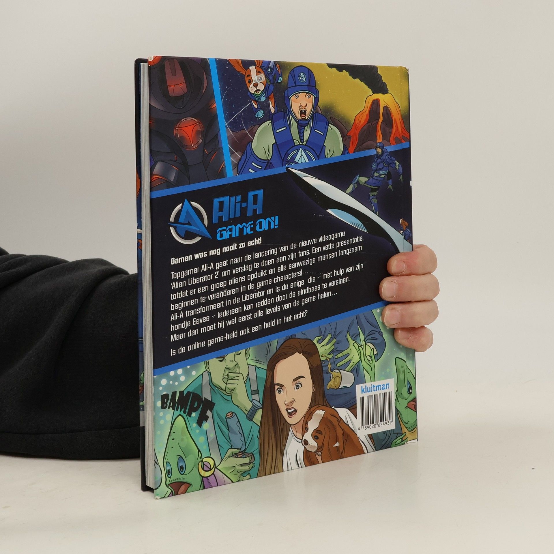 Dé graphic novel voor alle gamefans van Nederland! In deze geweldige graphic novel spat de actie van alle 200 pagina's! Topgamer Ali-A wordt uitgenodigd voor de presentatie van de lang verwachte videogame "Alien Liberator 2'. Samen met zijn vriendin Clare en zijn hondje Eevee gaat hij erheen om live verslag te doen aan zijn fans. Dat de presentatie groots en mee slepend zou worden had hij wel verwacht, maar waar hij niet op heeft gerekend, is hoe realistisch de actie wordt... Wanneer er een genadeloze groep aliens op de presentatie komt opdagen, is het aan Ali om te transformeren van een gameicoon tot een échte superheld. Zal het hem lukken om, met hulp van zijn fans en Eevee, de vijand te verslaan en zijn vriendin te redden?