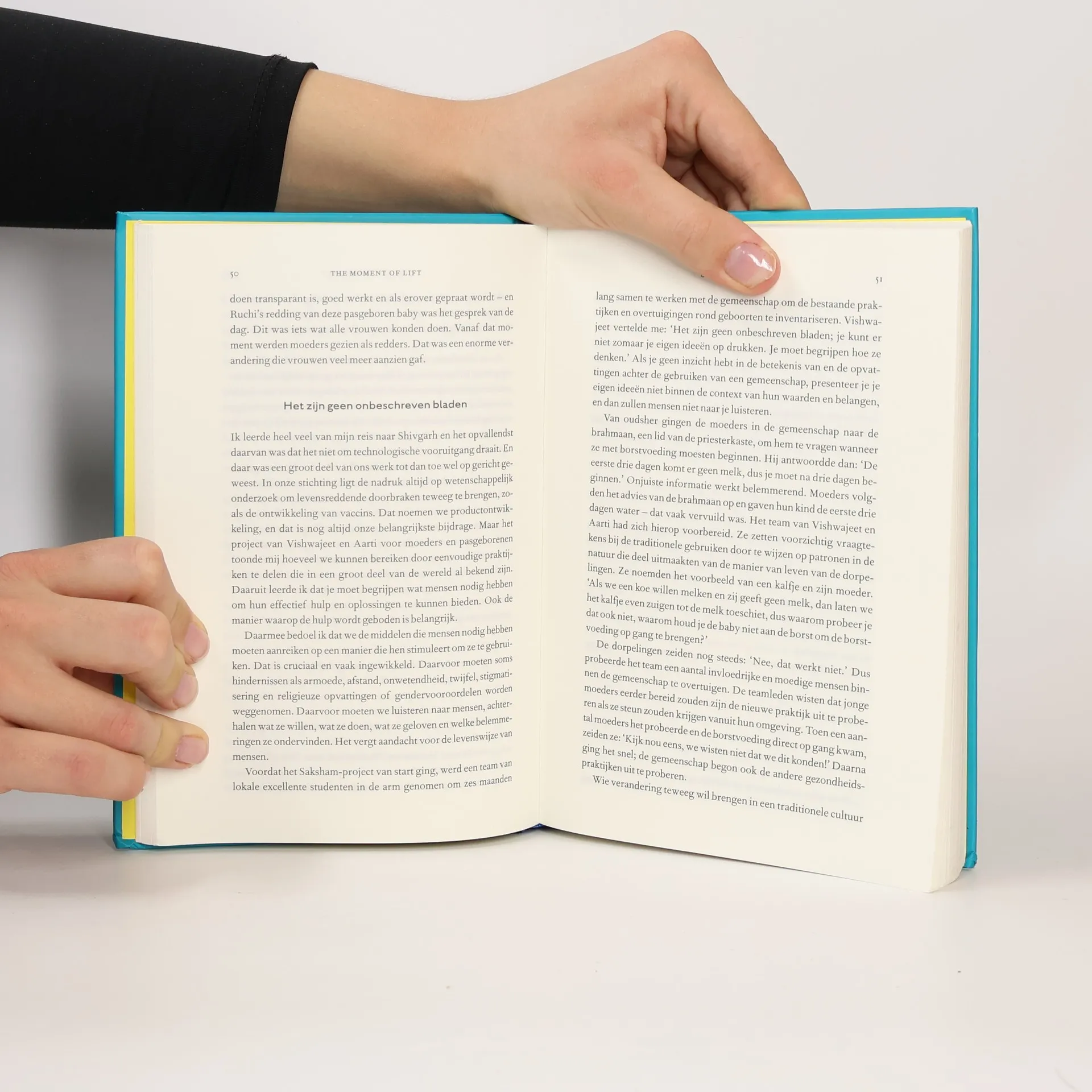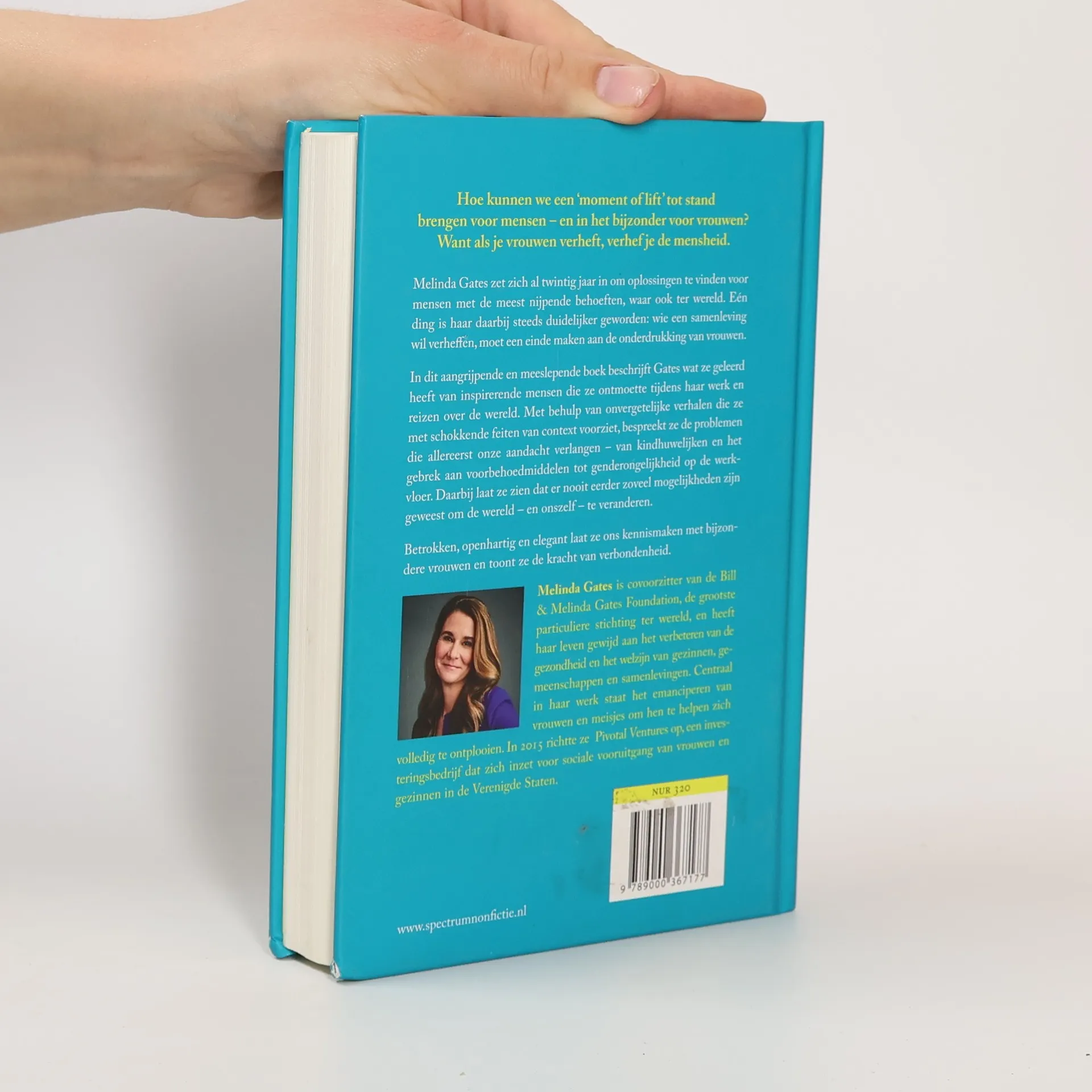Melinda Gates heeft een missie. Al twintig jaar zet ze zich als medeoprichter van de Bill & Melinda Gates Foundation in om oplossingen te vinden voor diegenen met de meest dringende problemen, waar ook ter wereld. Eén ding werd haar hierbij steeds duidelijker: in het streven naar vooruitgang zijn vrouwen essentieel. In haar inspirerende debuut duikt ze in de relatie tussen de emancipatie van vrouwen en succesvolle samenlevingen. Gebaseerd op haar jarenlange inzet voor vrouwenrechten, zoals het recht op geboortebeperking, emancipatie op de werkvloer en het uitbannen van alle vormen van seksisme, schetst ze een beeld van de enorme mogelijkheden die er zijn om verandering teweeg te brengen. En hoe we zelf ons steentje bij kunnen dragen. De vele ontroerende gesprekken met vrouwen van over de hele wereld en de ontluisterende data veranderen De moment of lift in een hartstochtelijk statement van een vrouw die uitgroeide tot een van de meest vooraanstaande voorvechtsters van gelijke rechten voor iedereen.