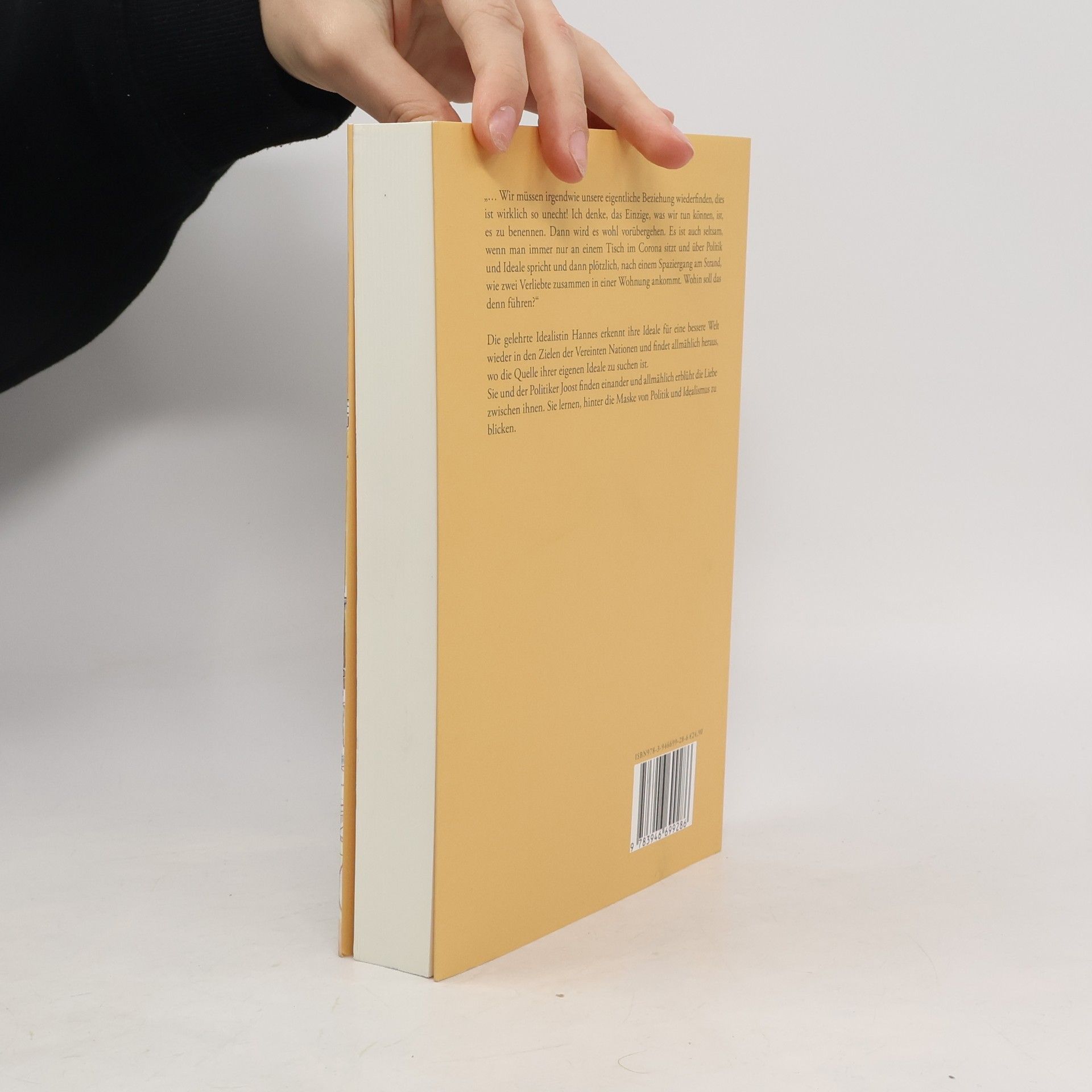 “… Wir müssen irgendwie unsere eigentliche Beziehung wiederfinden, dies ist wirklich so unecht! Ich denke, das Einzige, was wir tun können, ist, es zu benennen. Dann wird es wohl vorübergehen. Es ist auch seltsam, wenn man immer nur an einem Tisch im Corona sitzt und über Politik und Ideale spricht und dann plötzlich, nach einem Spaziergang am Strand, wie zwei Verliebte zusammen in einer Wohnung ankommt. Wohin soll das denn führen?” Die gelehrte Idealistin Hannes und der Politiker Joost finden zueinander und lernen, hinter die Maske von Politik und Idealismus zu schauen.