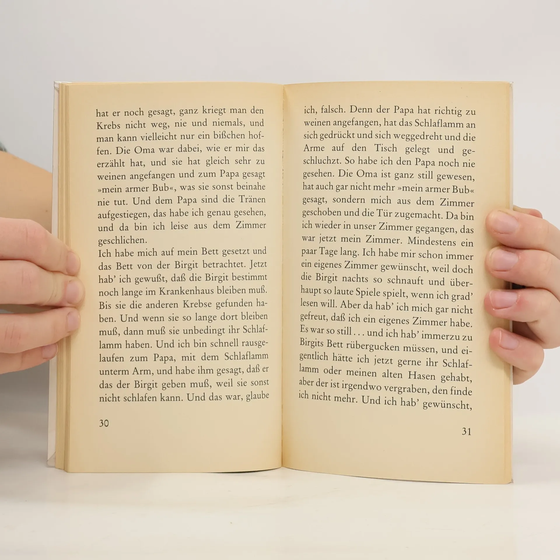 En morgen vågner Birgit og skeler. Hun kommer på hospitalet, og det viser sig, at hun har en kræftsvulst. Lillesøsteren oplever både sygdommen og forældrenes reaktion som uforståelig og skræmmende.