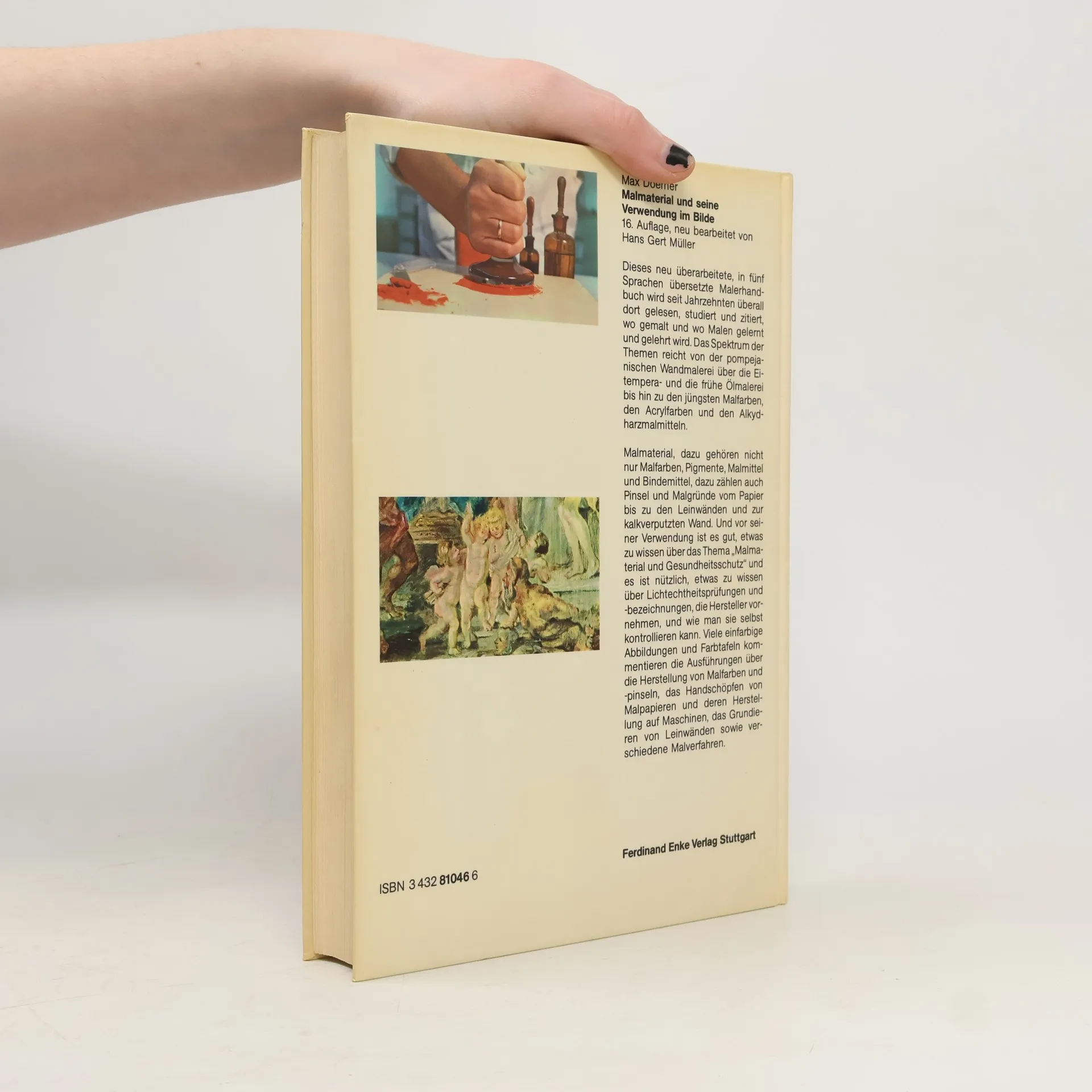 Dieses Standardwerk zur Maltechnik wird als das Fach- und Lehrbuch für Maler seit Jahrzehnten von Experten kontinuierlich betreut und neu bearbeitet. Es ist in mehrere Sprachen übersetzt und stets dort anzutreffen, wo Malverfahren gelehrt und gelernt werden oder wo einfach nur gemalt wird. Neben klassischen Malmaterialien sind die neuesten Malfarben, Pigmente, Malmittel und Bindemittel nach Herkunft und Geschichte aufgeführt, ebenso die Malgeräte und Malgründe, wie Papiere, Leinwand, Holz oder auch kalkverputzte Wände. Spezialthemen wie Gesundheitsschutz, Lichtechtheitsprüfung, Wollskala und verwandte Bezeichnungen, werden in eigenen Abschnitten behandelt. Die Palette der Themen erstreckt sich von den antiken Maltechniken, der Temperamalerei des Mittelalters und der frühen Ölmalerei bis hin zu den jüngsten Malfarben, den Acrylfarben und Alkydharzmalmitteln. Ein erklärender Anhang mit weiterführenden Literaturangaben, Farbtafeln und mehr als 250 Abbildungen veranschaulichen die Ausführungen über die Verwendung und Herstellung von Malfarben, das Grundieren von Leinwänden, die Fabrikation von Pinseln, die manuelle und industrielle Erzeugung von Malpapieren sowie generell die Theorie und Praxis verschiedener Malverfahren.