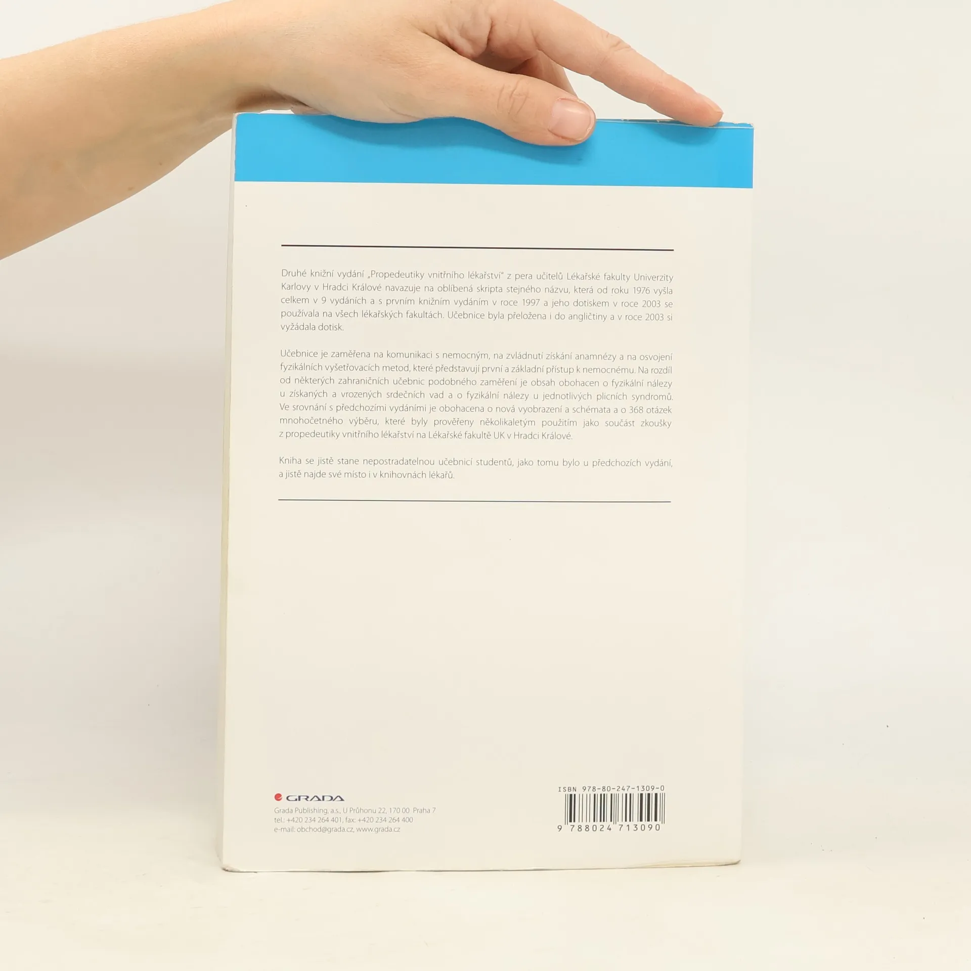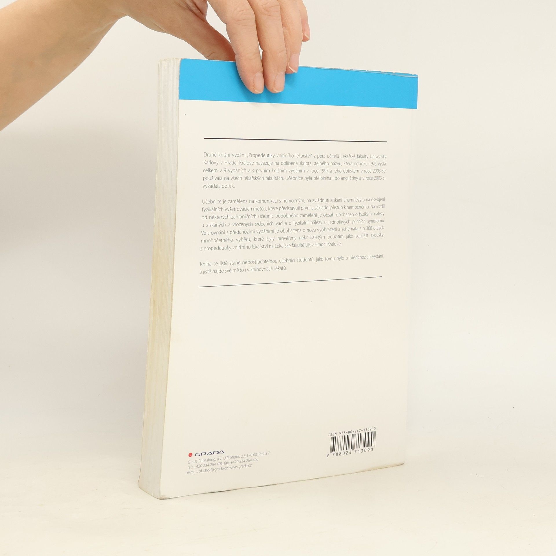 Tato zcela nová, přepracovaná a doplněná publikace navazuje na mimořádně úspěšnou učebnici z roku 1997, která spolu s dřívějšími 9 vydáními ve formě skript a 2 dotisků knižního vydání je vydávána celkem po třinácté a byla používána na všech lékařských fakultách.Publikace byla a je studenty hodnocena za didakticky nejlepší ze současně dostupných učebnic pro vstup do základního klinického oboru. Studenti se tak systematicky seznamují naprosto srozumitelným a názorným způsobem s fyzikálním vyšetřen