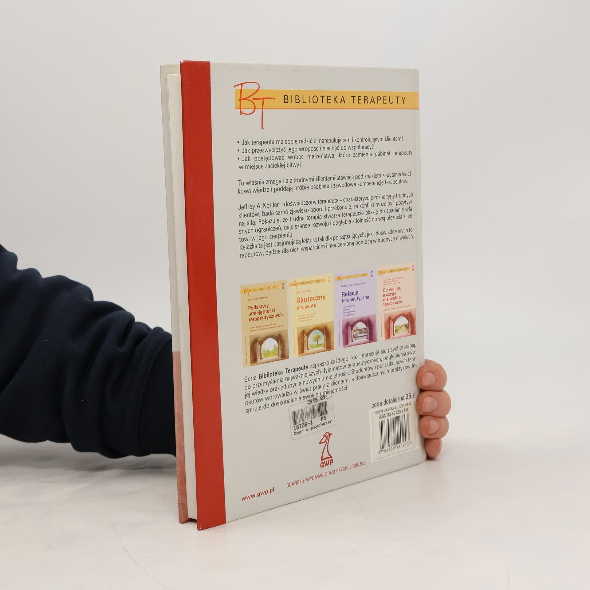 Opór, równoznaczny z brakiem postępu lub nawet regresją w procesie zmian, jest nieuchronnym doświadczeniem osób parających się profesjonalnych pomaganiem innym. Bywa traktowany jako sygnał prawidłowo rozwijającego się procesu terapeutycznego, jako oznaka błędu czy niekompetencji terapeuty lub jako przejaw określonej struktury osobowości klienta i ważnej informacji o mechanizmach jego funkcjonowania. Bywa więc źródłem niepokoju, frustracji lub istotnej informacji o kliencie. Autor, doświadczony terapeuta, charakteryzuje różne typy trudnych klientów, bada samo zjawisko oporu i przekonuje, że konflikt może być pozytywną siłą. Przekonuje, że trudna terapia stwarza terapeucie okazję do zbadania własnych ograniczeń, daje szansę rozwoju i pogłębia zdolność do współczucia. Z lektury książki dowiesz się więc jak sobie radzić z manipulującym i kontrolującym klientem oraz jak przezwyciężyć jego wrogość i niechęć do współpracy. Mamy nadzieję, że książka okaże się wsparciem i nieocenioną pomocą w trudnych chwilach. „Zdecydowanie najwięcej zawdzięczam trudnym klientem, których spotkałem w ciągu ostatniego dziesięciolecia. Ich kreatywność, upór i zaangażowanie zmusiły mnie do wykroczenia daleko poza granice mojego wygodnego, ułożonego małego światka.” Jeffrey A. Kottler