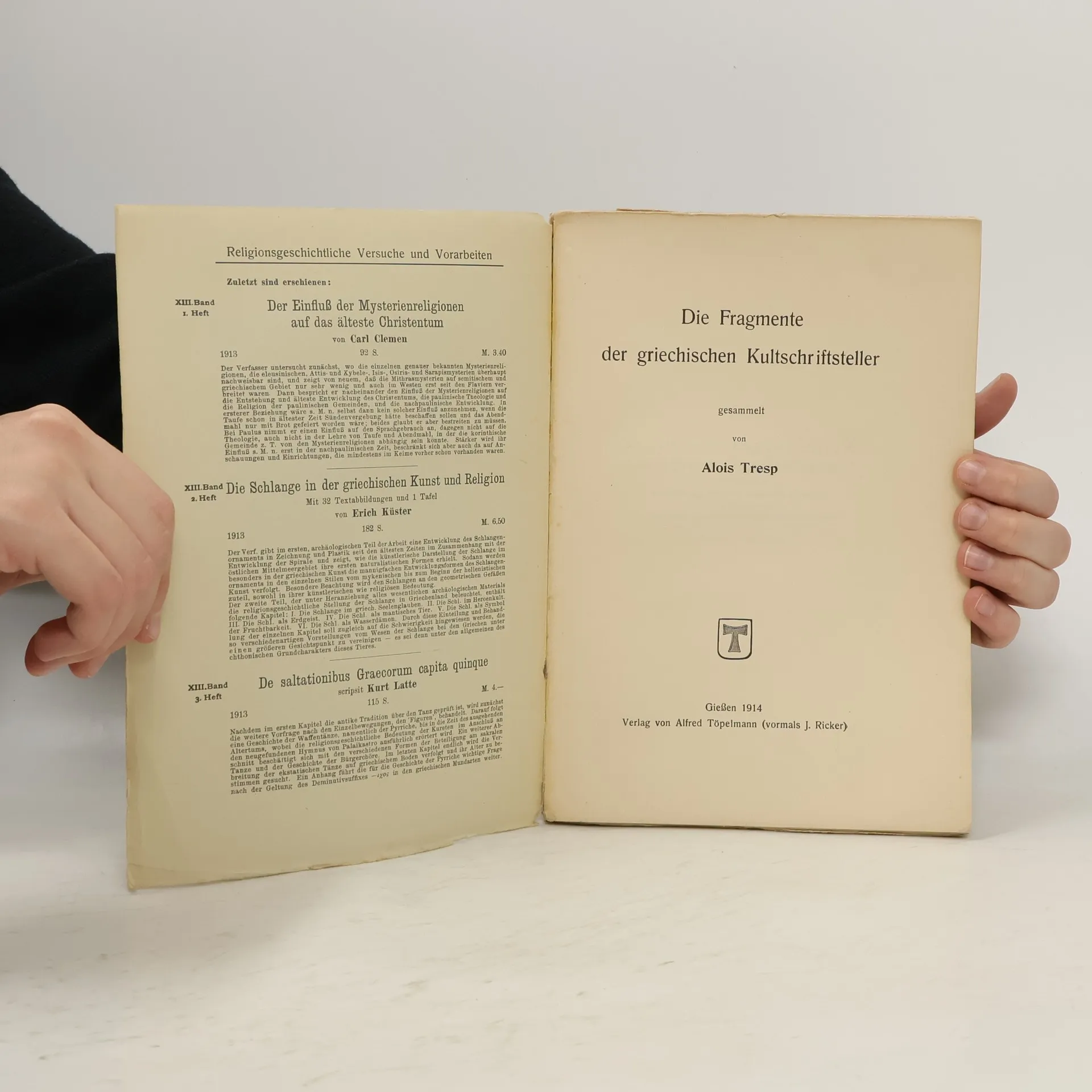 Die Fragmente der Griechischen Kultschriftsteller, Alois Tresp