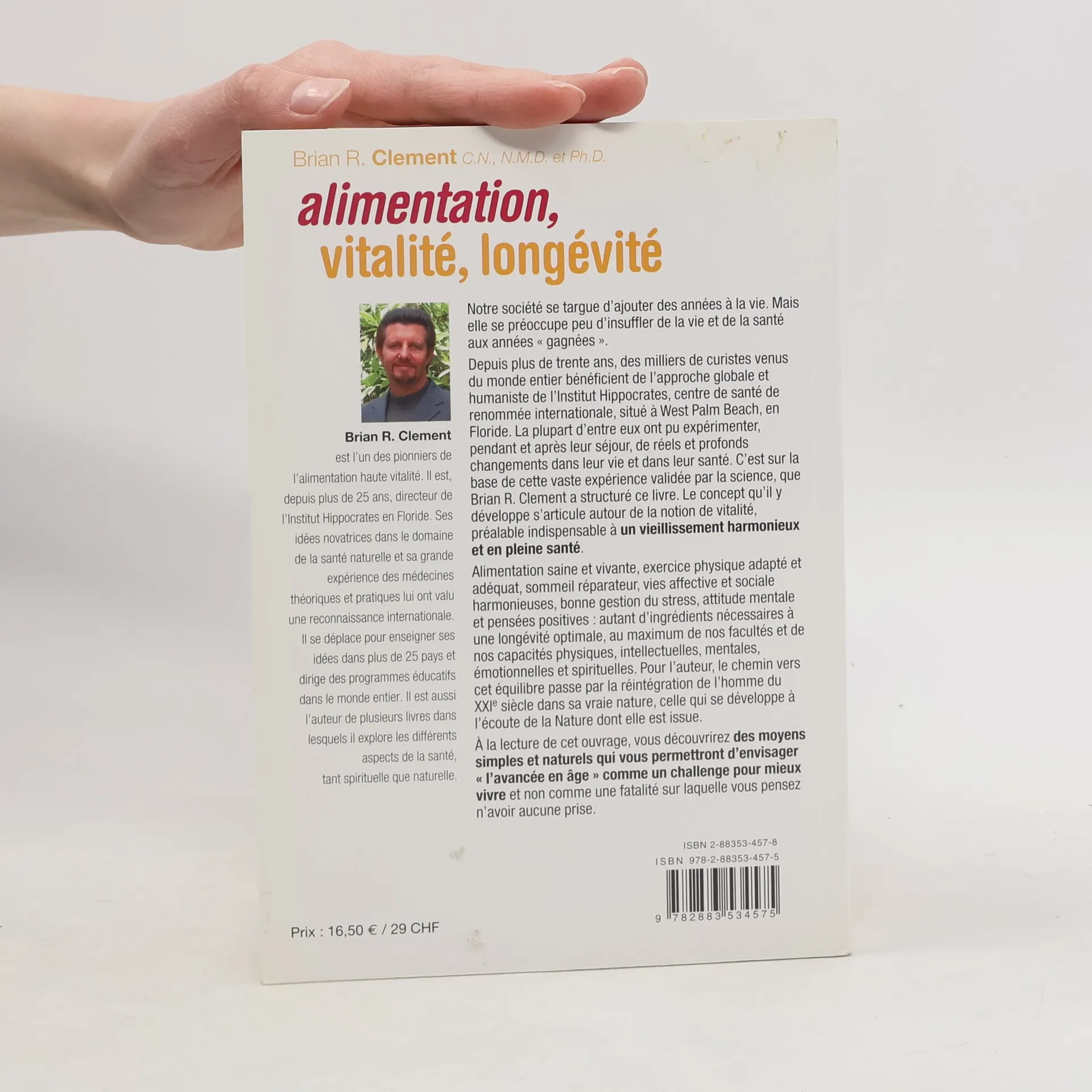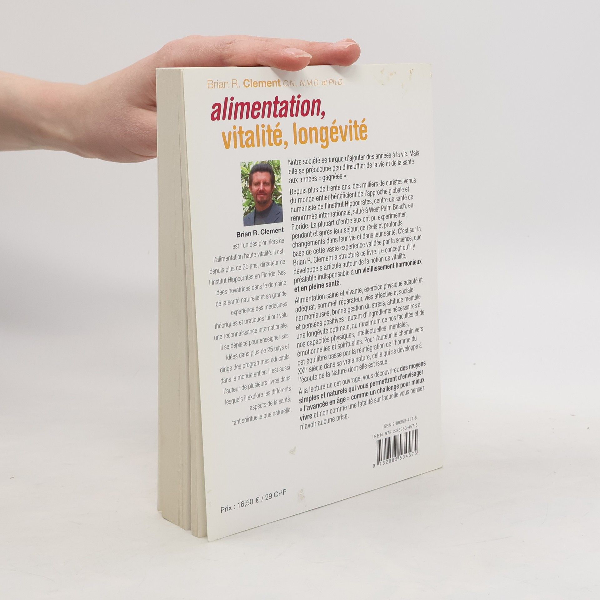 Notre société se targue d'ajouter des années à la vie. Mais elle se préoccupe peu d'insuffler de la vie et de la santé aux années " gagnées ". Depuis plus de trente ans, des milliers de curistes venus du monde entier bénéficient de l'approche globale et humaniste de l'Institut Hippocrates, centre de santé de renommée internationale, situé à West Palm Beach, en Floride. La plupart d'entre eux ont pu expérimenter, pendant et après leur séjour, de réels et profonds changements dans leur vie et dans leur santé. C'est sur la base de cette vaste expérience validée par la science, que Brian R. Clement a structuré ce livre. Le concept qu'il y développe s'articule autour de la notion de vitalité, préalable indispensable à un vieillissement harmonieux et en pleine santé. Alimentation saine et vivante, exercice physique adapté et adéquat, sommeil réparateur, vies affective et sociale harmonieuses, bonne gestion du stress, attitude mentale et pensées positives : autant d'ingrédients nécessaires à une longévité optimale, au maximum de nos facultés et de nos capacités physiques, intellectuelles, mentales, émotionnelles et spirituelles. Pour l'auteur, le chemin vers cet équilibre passe par la réintégration de l'homme du XXIe siècle dans sa vraie nature, celle qui se développe à l'écoute de la Nature dont elle est issue. A la lecture de cet ouvrage, vous découvrirez des moyens simples et naturels qui vous permettront d'envisager " l'avancée en âge " comme un challenge pour mieux vivre et non comme une fatalité sur laquelle vous pensez n'avoir aucune prise.