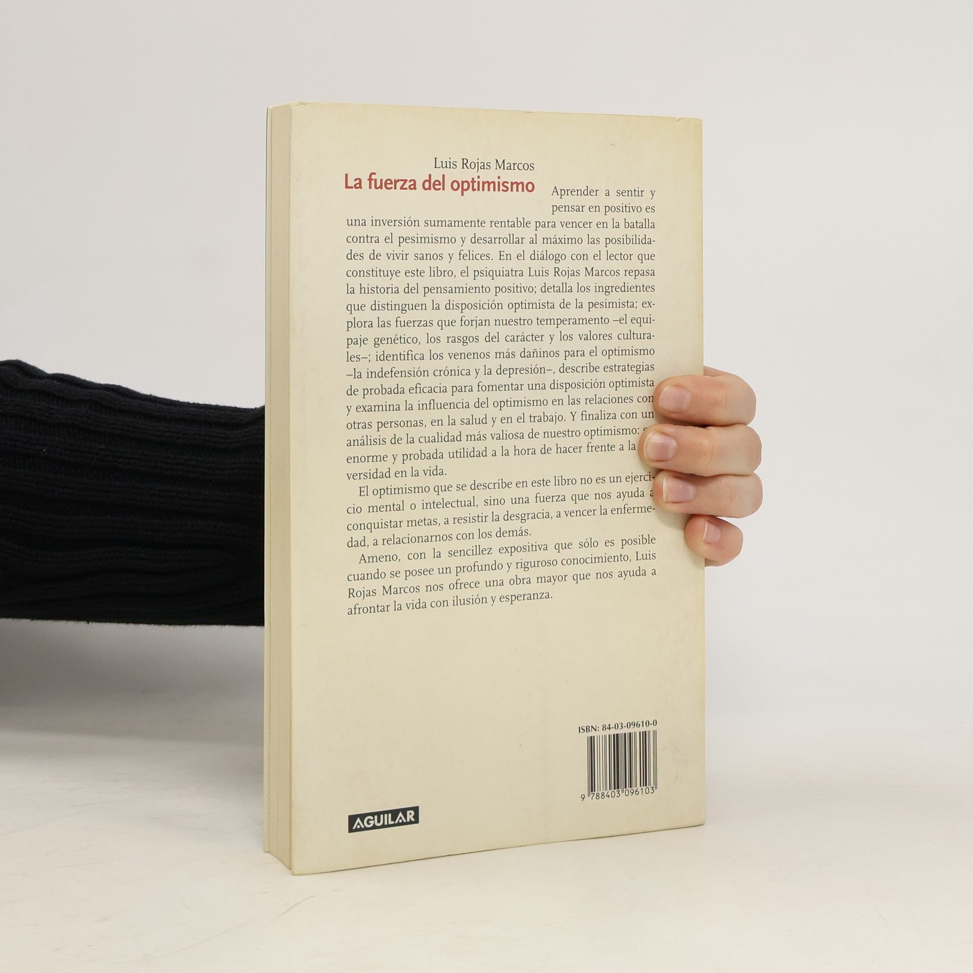 Aprender a sentir y pensar en positivo es una inversión sumamente rentable para vencer en la batalla contra el pesimismo y desarrollar al máximo las posibilidades de vivir sanos y felices. En este libro, el psiquiatra Luis Rojas Marcos repasa la historia del pensamiento positivo; detalla los ingredientes que distinguen la disposición optimista de la pesimista; explora las fuerzas que forjan nuestro temperamento, identifica los venenos más dañinos para el optimismo, describe estrategias de probada eficacia para fomentar una disposición positiva y examina la influencia del optimismo en las relaciones con otras personas, en la salud y en el trabajo. Y finaliza con un análisis de la cualidad más valiosa de nuestro optimismo: su enorme y probada utilidad a la hora de hacer frente a la adversidad en la vida.