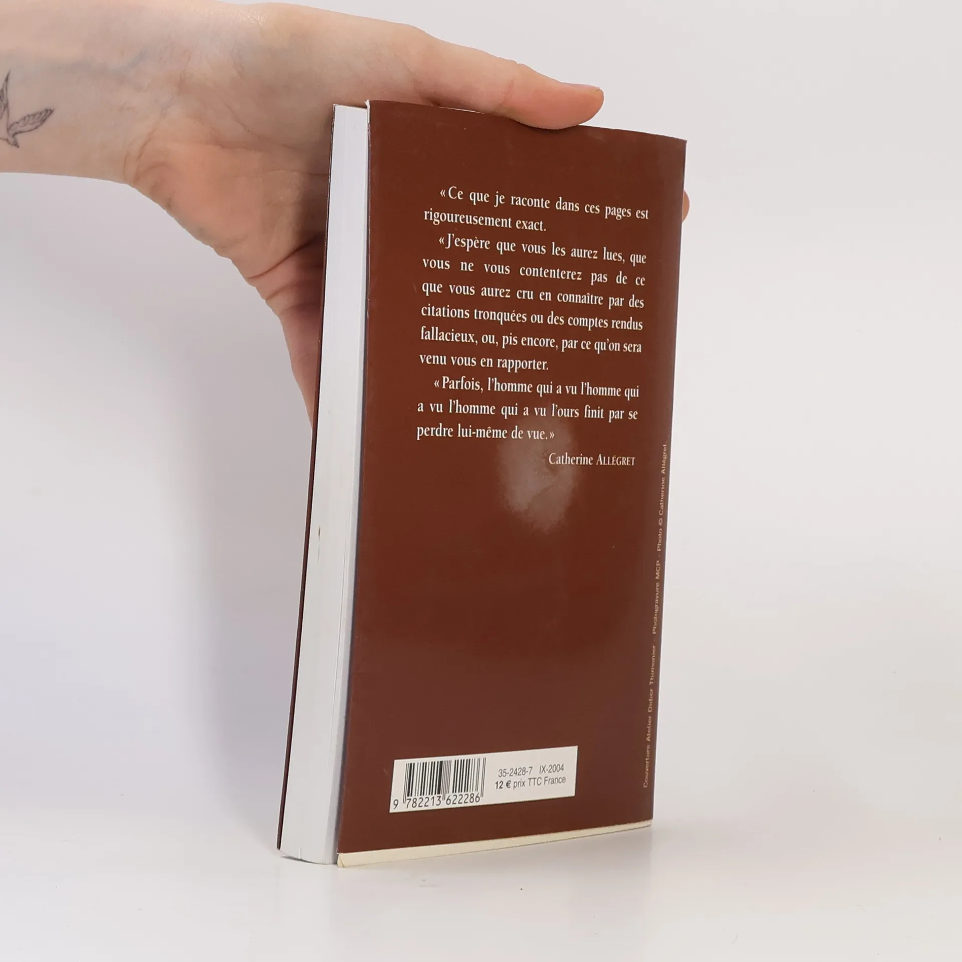 « Ce que je raconte dans ces pages est rigoureusement exact.« J'espère que vous les aurez lues, que vous ne vous contenterez pas de ce que vous aurez cru en connaître par des citations tronquées ou des comptes rendus fallacieux, ou, pis encore, par ce qu'on sera venu vous en rapporter.« Parfois, l'homme qui a vu l'homme qui a vu l'homme qui a vu l'ours finit par se perdre lui-même de vue. »Catherine ALLÉGRET