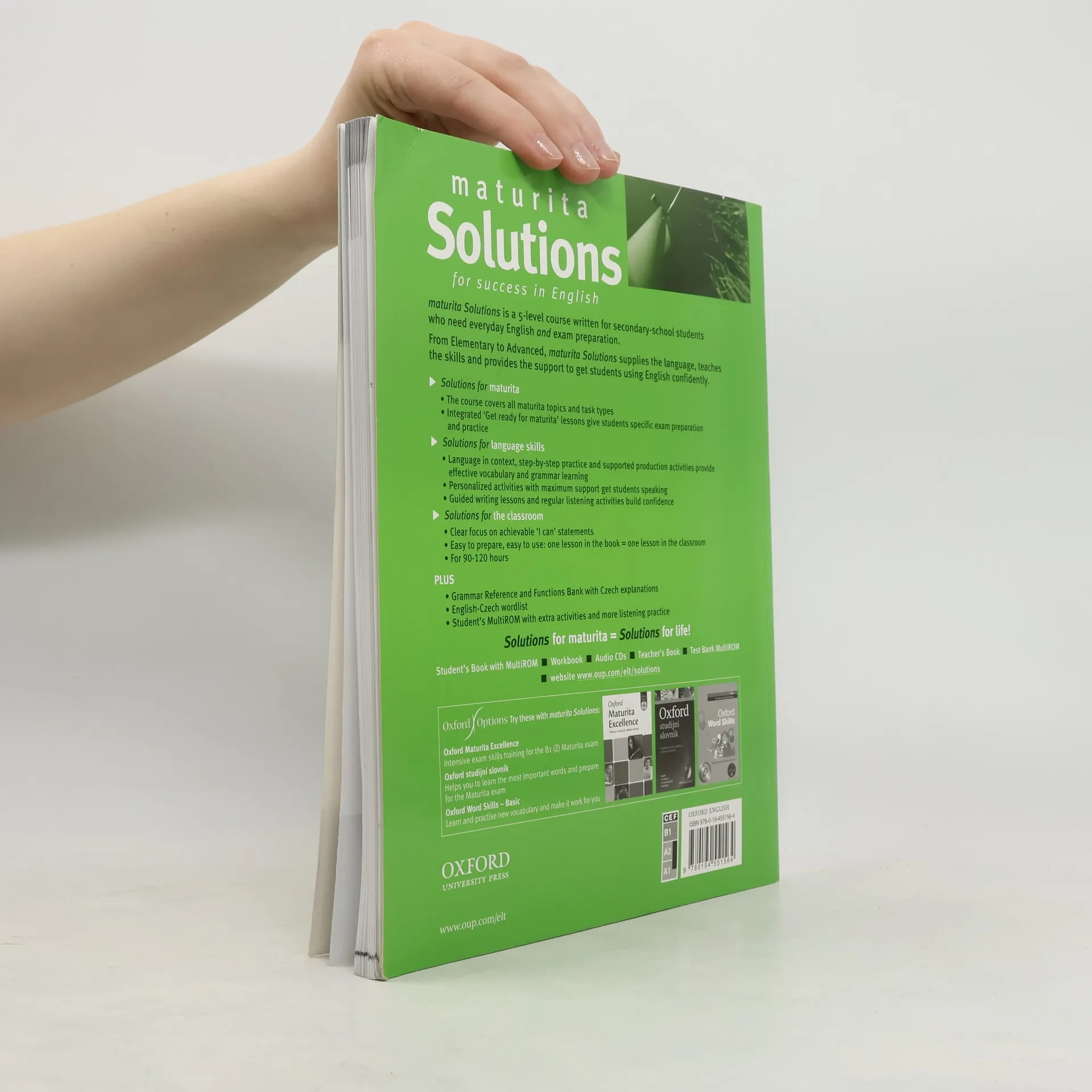 Zcela nový pětidílný kurz určený pro studenty českých středních škol, kteří se připravují na NOVOU MATURITU z anglického jazyka. Přehledná, jednoduchá stavba lekce: jedna stránka = jedna 45minutová hodina probírá a procvičuje maturitní témata - GET READY FOR MATURITA. Připravuje na všechny části a na obě úrovně NOVÉ MATURITY. V metodické příručce je mnoho kopírovatelných doplňkových materiálů a nápadů pro mixed-ability classes