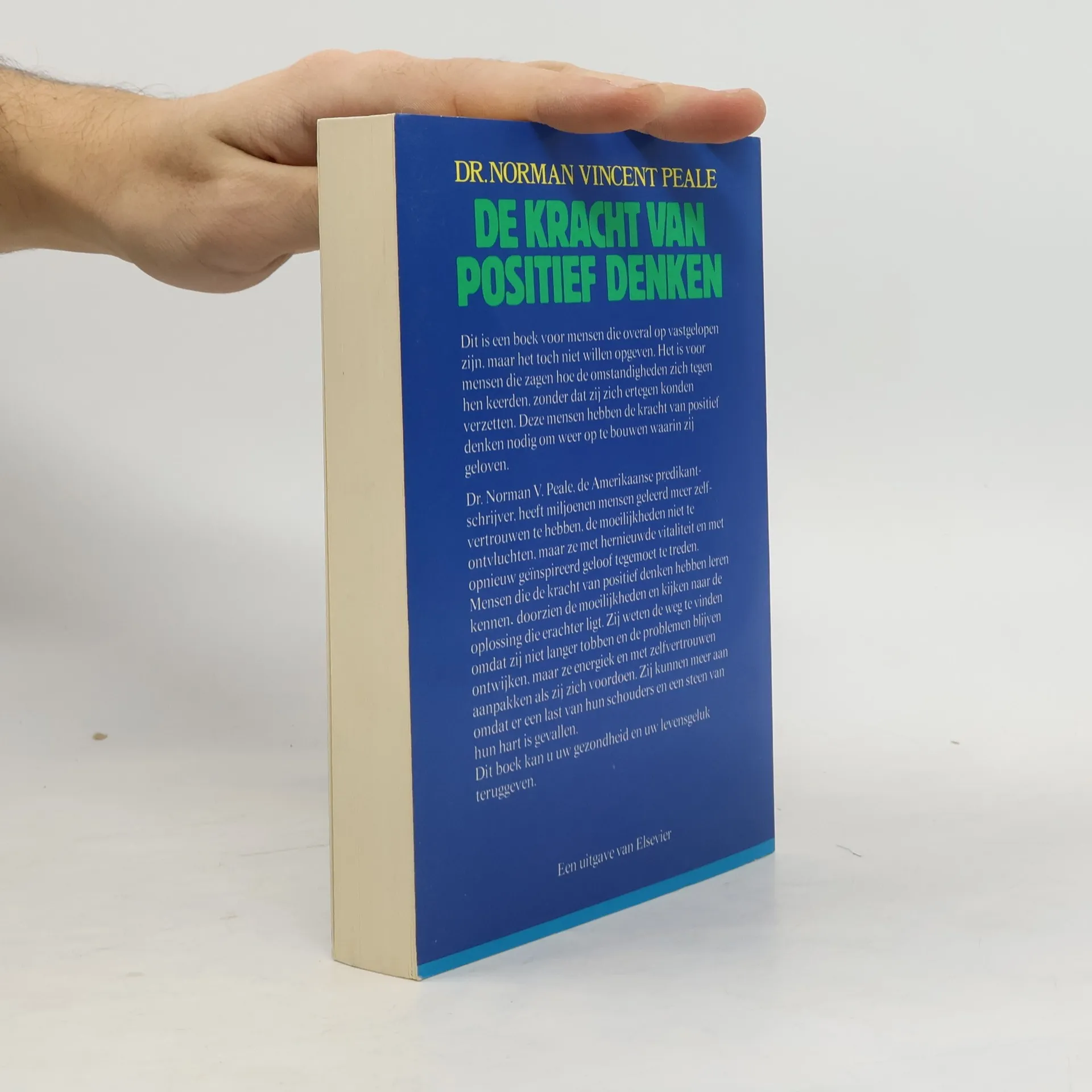Dit is een boek voor mensen die overal op vastgelopen zijn, maar het toch niet willen opgeven. Het is voor mensen die zagen hoe de omstandigheden zich tegen hen keerden, zonder dat zij zich ertegen konden verzetten. Deze mensen hebben de kracht van positief denken nodig om weer op te bouwen waarin zij geloven. Dr. Norman V. Peale, de Amerikaanse predikant-schrijver, heeft miljoenen mensen geleerd meer zelfvertrouwen te hebben, de moeilijkheden niet te ontvluchten, maar ze met hernieuwde vitaliteit en met opnieuw geïnspireerd geloof tegenmoet te treden. Mensen die de kracht van positief denken hebben leren kennen, doorzien de moeilijkheden en kijken naar de oplossing die erachter ligt. Zij weten de weg te vinden omdat zij niet langer tobben en de problemen blijven ontwijken, maar ze energiek en met zelfvertrouwen aanpakken als zij zich voordoen. Zij kunnen meer aan omdat er een last van hun schouders en een steen van hun hart is gevallen. Dit boek kan u uw gezondheid en uw levensgeluk teruggeven.
