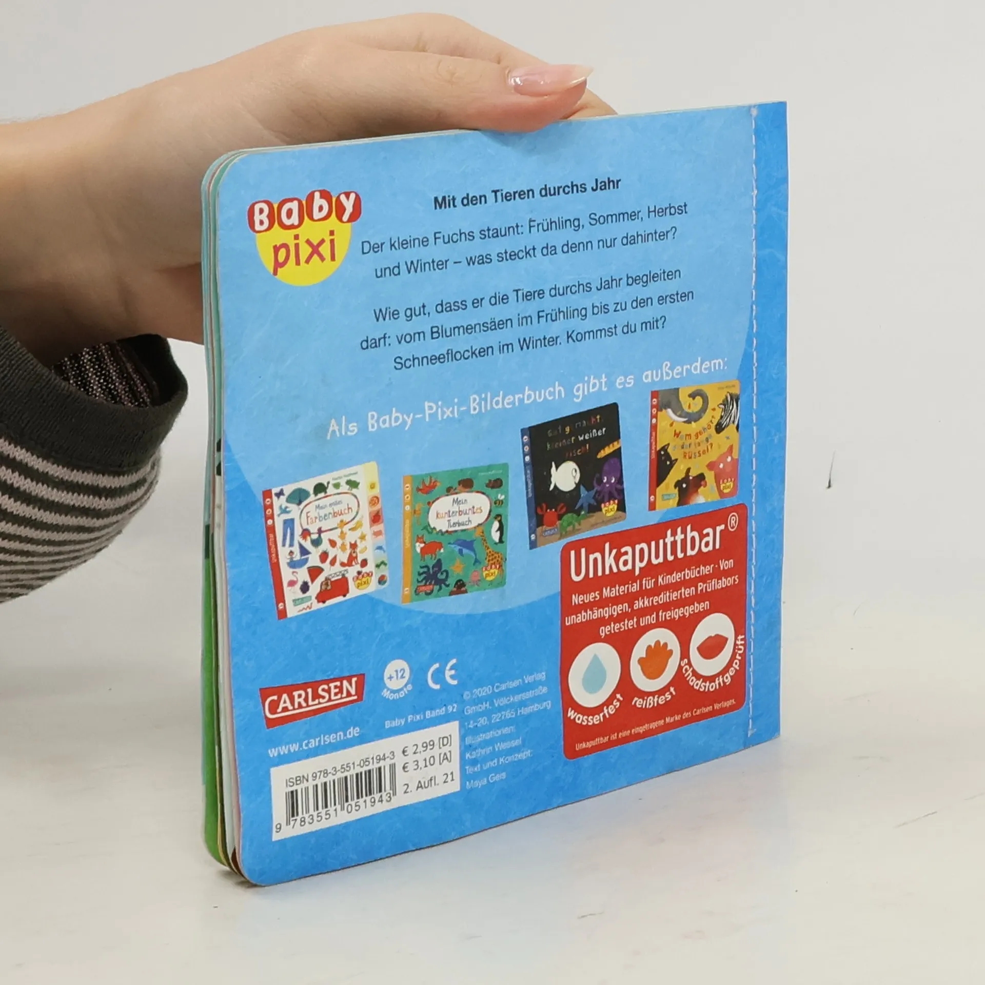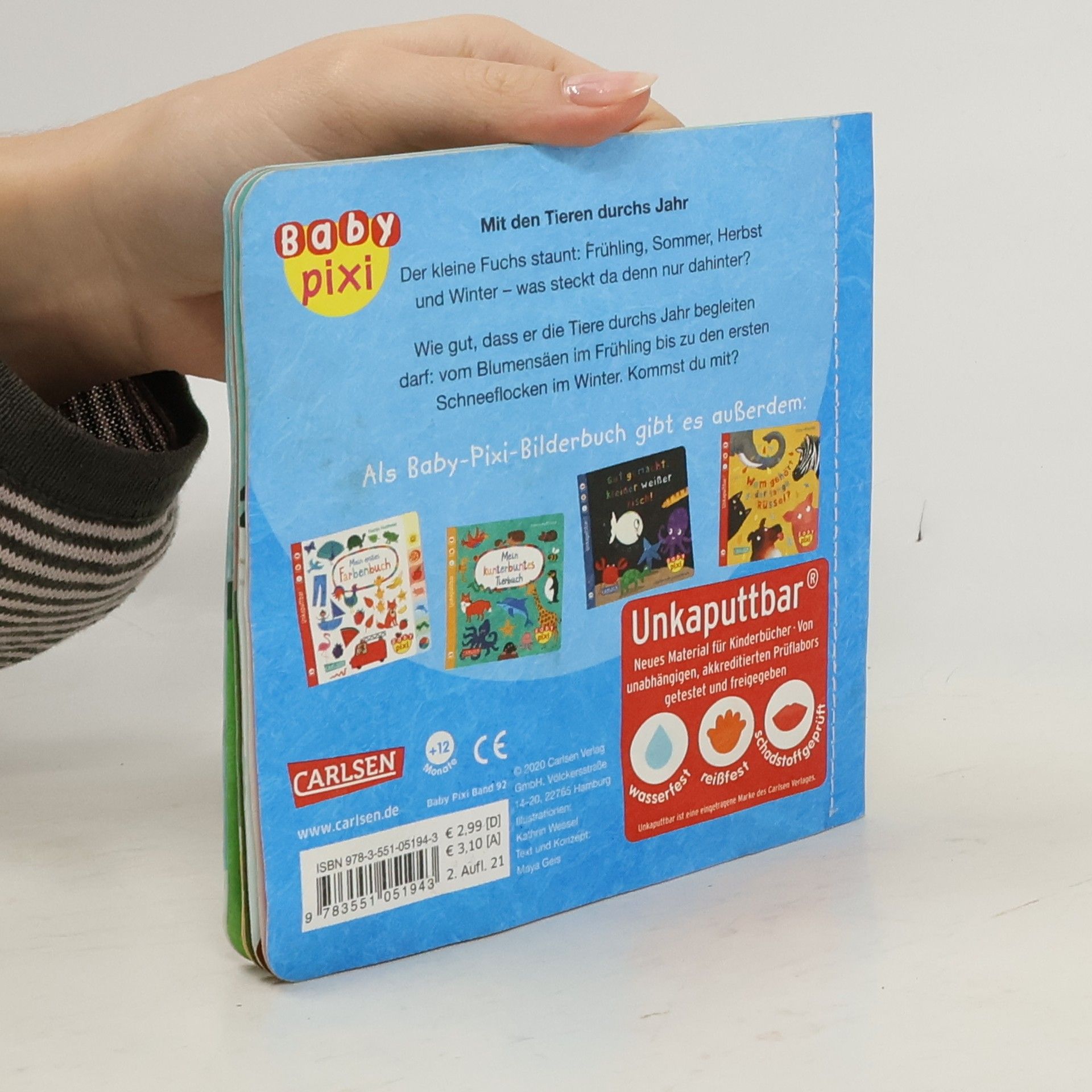 Der kleine Fuchs staunt: Frühling, Sommer, Herbst und Winter – was steckt da denn nur dahinter? Wie gut, dass er die Tiere durchs Jahr begleiten darf: vom Blumensäen im Frühling bis zu den ersten Schneeflocken im Winter. <strong>Ein vergnügliches erstes Bilderbuch rund um die Jahreszeiten – farbenfroh illustriert und mit liebenswerten Reimen zum Mitsprechen.</strong> Baby Pixi für die ganz Kleinen: Das innovative Material ist wasserfest, schadstoffgeprüft und reißfest. Baby Pixi – einfach unkaputtbar®!