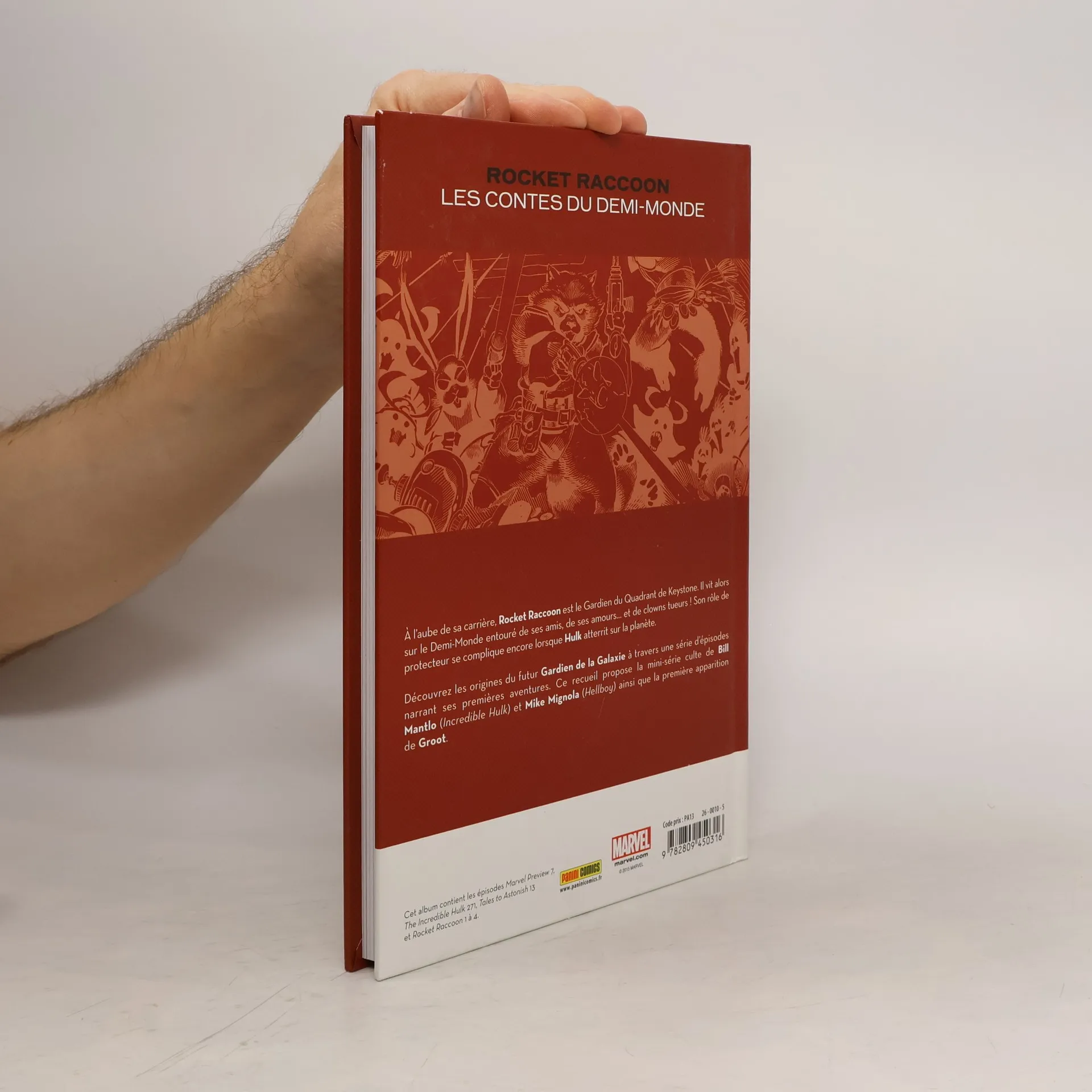 A l'aube de sa carrière, Rocket Raccoon est le Gardien du Quadrant de Keystone. Il vit alors sur le Demi-Monde entouré de ses amis, de ses amours... et de clowns tueurs !Son rôle de protecteur se complique encore lorsque Hulk atterrit sur la planète. Découvrez les origines du futur Gardien de la Galaxie à travers une série d'épisodes narrant ses premières aventures. Ce recueil propose la mini-série culte de Bill Mantlo (Incredible Nulk) et Mike Mignola (Nellboy) ainsi que la première apparition de Groot.