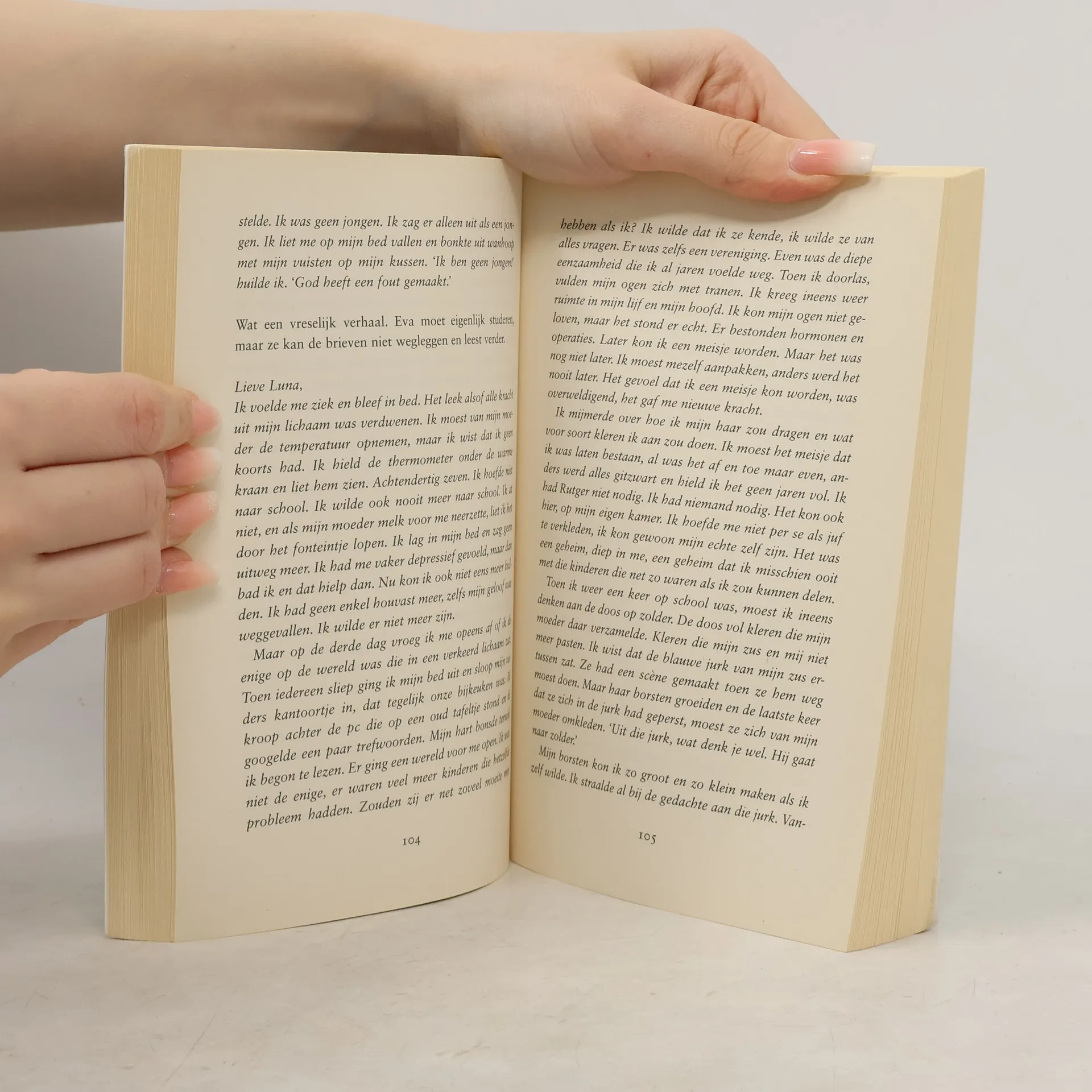 Ze is verdiept in haar boek als er wordt gebeld. Het zou Bart kunnen zijn. Ze staat op om open te doen. Maar het zijn niet Barts voetstappen die ze op de trap hoort. Nieuwsgierig doet ze de deur open. Remco, jij! Wat moet hij hier ineens? Als ze had geweten dat hij het was, had ze nooit voor hem opengedaan. Maar wat moet ze? Hem afschepen bij de deur? Ze kijkt hem aan, hij ziet eruit alsof hij heeft gebruikt. Hij heeft een gejaagde blik in zijn ogen. Ik moet je spreken, zegt hij en voor ze hem kan wegsturen loopt hij langs haar heen haar kamer in. Dit wil ik helemaal niet, denkt ze. Hij gaat op het puntje van de bank zitten, alsof hij elk moment kan opspringen. Ik hield van Luna. Hij verheft zijn stem. Dat weet je, ik hield heel veel van haar. Ik kan wel zeggen dat ik nog nooit zoveel van een vrouw heb gehouden. Hij kijkt Eva aan. Misschien juist daarom. Eva verstijft. Jij bent de enige die ik dit vertel, zegt hij terwijl hij naar haar toe buigt. Alleen jij krijgt dit te horen. En ik zweer je, na dit gesprek zet ik voorgoed een punt achter dit afschuwelijke drama. Dat heb ik mezelf gezworen. Gadverdamme. Er gaat een rilling door Eva heen. Wat gaat hij haar vertellen?