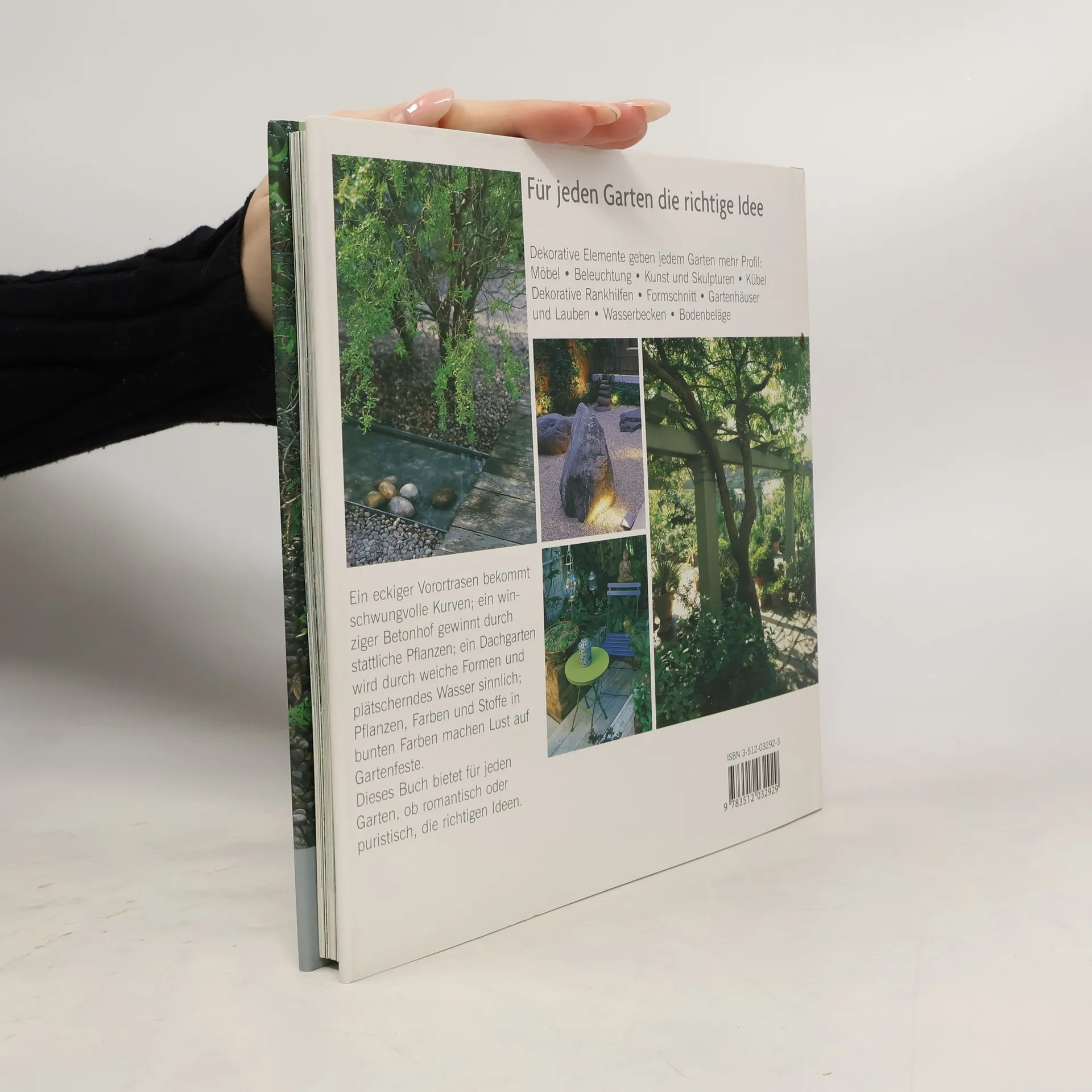 Am Beispiel von 7 unterschiedlichen modernen Gärten werden zahlreiche kreative Dekorationsvorschläge gemacht.