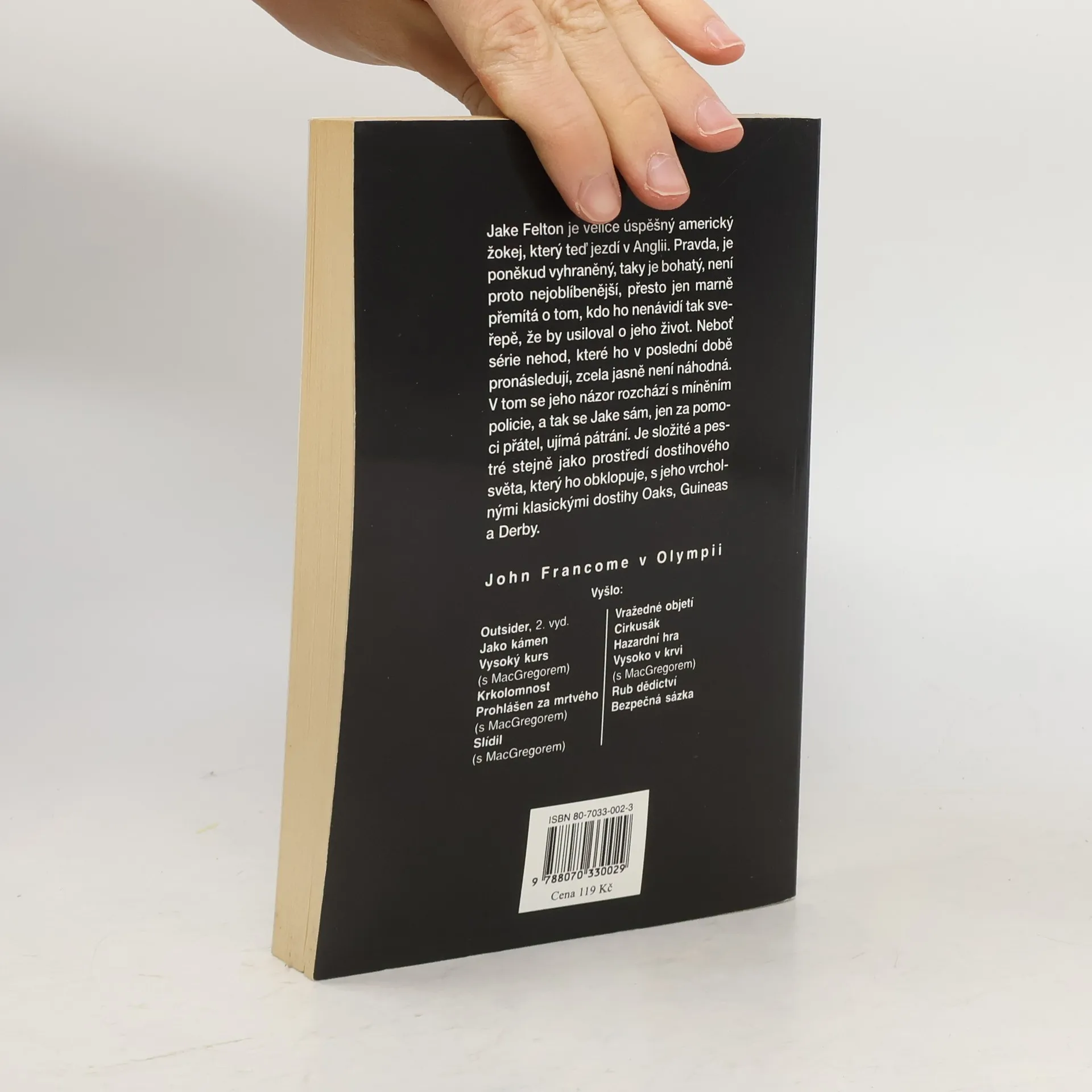Jake Felton je velice úspěšný americký žokej, který teď jezdí v Anglii. Pravda, je poněkud vyhraněný, taky je bohatý, není proto nejoblíbenější, přesto jen marně přemítá o tom, kdo ho nenávidí tak sveřepě, že by usiloval o jeho život. Neboť série nehod, které ho v poslední době pronásledují, zcela jasně není náhodná. V tom se jeho názor rozchází s míněním policie, a tak se Jake sám, jen za pomoci přátel, ujímá pátrání. Je složité a pestré stejně jako prostředí dostihového světa, který ho obklopuje, s jeho vrcholnými klasickými dostihy Oaks, Guineas a Derby.