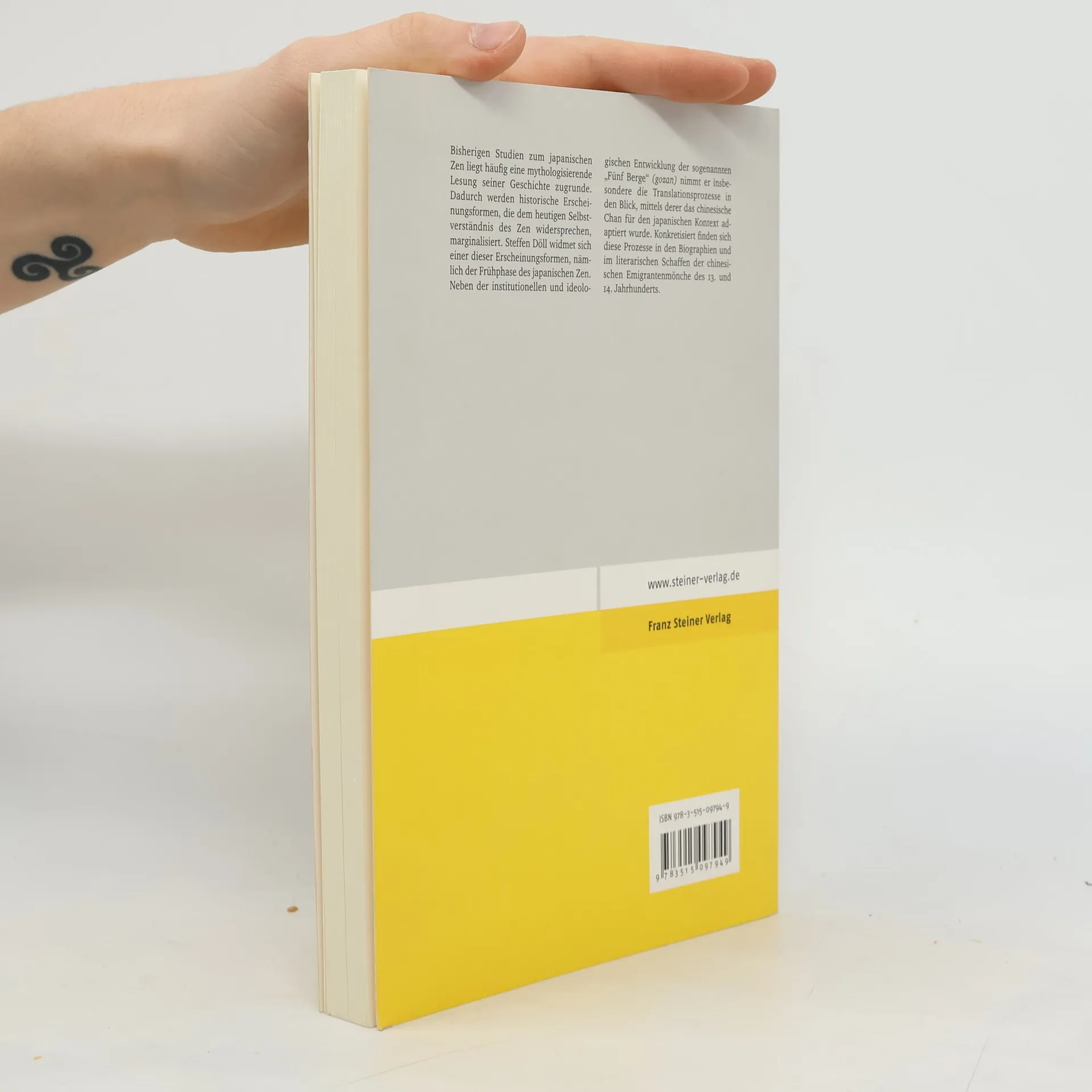 Bisherigen Studien zum japanischen Zen liegt häufig eine mythologisierende Lesung seiner Geschichte zugrunde. Dadurch werden historische Erscheinungsformen, die dem heutigen Selbstverständnis des Zen widersprechen, marginalisiert. Steffen Döll widmet sich einer dieser Erscheinungsformen, nämlich der Frühphase des japanischen Zen. Neben der institutionellen und ideologischen Entwicklung der sogenannten „Fünf Berge“ (gozan ) nimmt er insbesondere die Translationsprozesse in den Blick, mittels derer das chinesische Chan für den japanischen Kontext adaptiert wurde. Konkretisiert finden sich diese Prozesse in den Biographien und im literarischen Schaffen der chinesischen Emigrantenmönche des 13. und 14. Jahrhunderts.