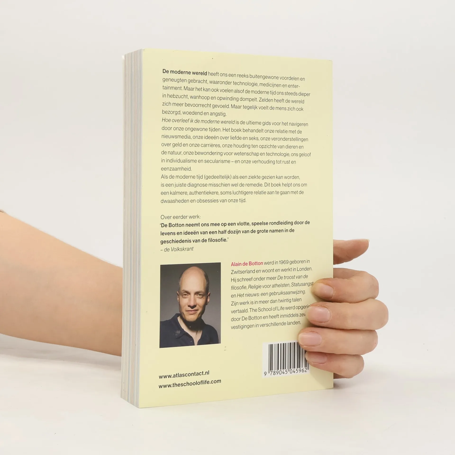 ‘Hoe overleef ik de moderne wereld” van Alain de Botton & The School of Life is de ultieme gids voor het navigeren door onze ongewone tijden. Het boek behandelt onze relatie met de nieuwsmedia, onze ideeën over liefde en seks, onze veronderstellingen over geld en onze carrières, onze houding ten opzichte van dieren en de natuur, onze bewondering voor wetenschap en technologie, ons geloof in individualisme en secularisme – en onze verhouding tot rust en eenzaamheid.De moderne wereld heeft ons een reeks buitengewone voordelen en geneugten gebracht, waaronder technologie, medicijnen en entertainment. Maar het kan ook voelen alsof de moderne tijd ons steeds dieper in hebzucht, wanhoop en opwinding dompelt. Zelden heeft de wereld zich meer bevoorrecht gevoeld. Maar tegelijk voelt de mens zich ook bezorgd, woedend en angstig. Als de moderne tijd (gedeeltelijk) als een ziekte gezien kan worden, is een juiste diagnose misschien wel de remedie. Het boek helpt ons om een kalmere, authentiekere, soms luchtigere relatie aan te gaan met de dwaasheden en obsessies van onze tijd.