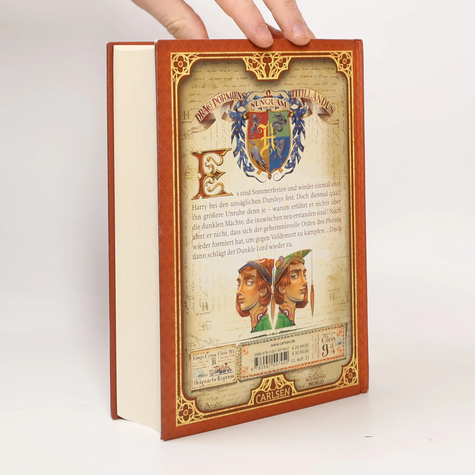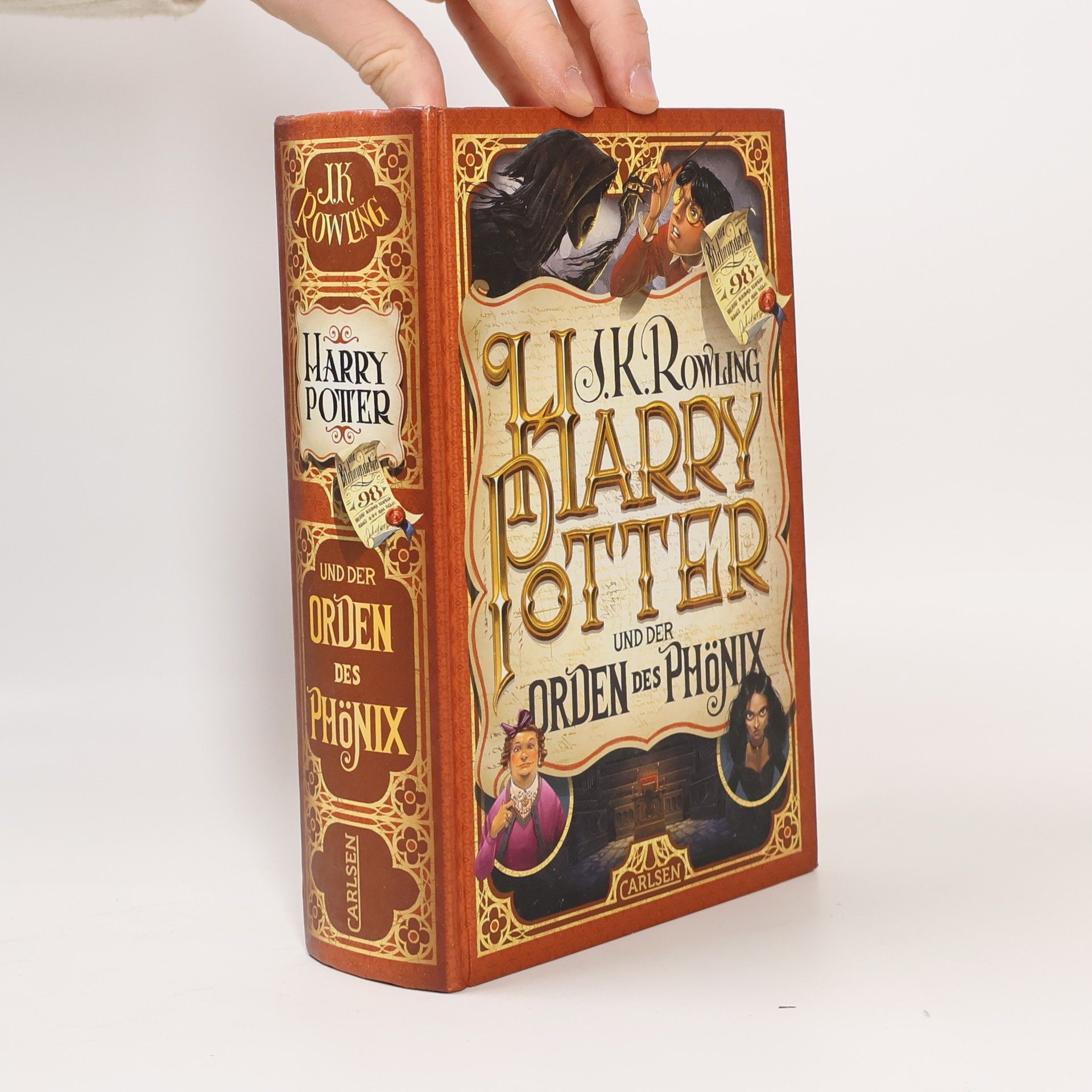 Detailreiche und prachtvoll veredelte Gestaltung aller Bände anlässlich des 20-jährigen Jubiläums Es sind Sommerferien und wieder einmal sitzt Harry bei den unsäglichen Dursleys fest. Doch diesmal treibt ihn größere Unruhe denn je – warum erfährt er nichts über die dunklen Mächte, die inzwischen neu erstanden sind? Noch ahnt er nicht, was der geheimnisvolle Orden des Phönix gegen Voldemort ausrichten kann. Doch dann schlägt der Dunkle Lord wieder zu. Harry muss seine Freunde um sich scharen, sonst gibt es kein Entrinnen. Ein generationenübergreifender Fantasy-Klassiker Millionen von Leser*innen und mehrere Generationen sind mit den Geschichten von Harry Potter aufgewachsen. Die Autorin hat mit Hogwarts ein Universum geschaffen, das einzigartig ist und eine immense kulturelle Bedeutung erlangt hat. Neben der magischen Welt und spannenden Abenteuern spielen auch moralische Werte wie Freundschaft, Toleranz, Loyalität und der Einsatz für das Gute eine wichtige Rolle. Diese vom italienischen Illustrator Iacopo Bruno neu gestaltete Ausgabe des fünften Bandes der Harry-Potter-Serie wird Leser*innen jeden Alters verzaubern.