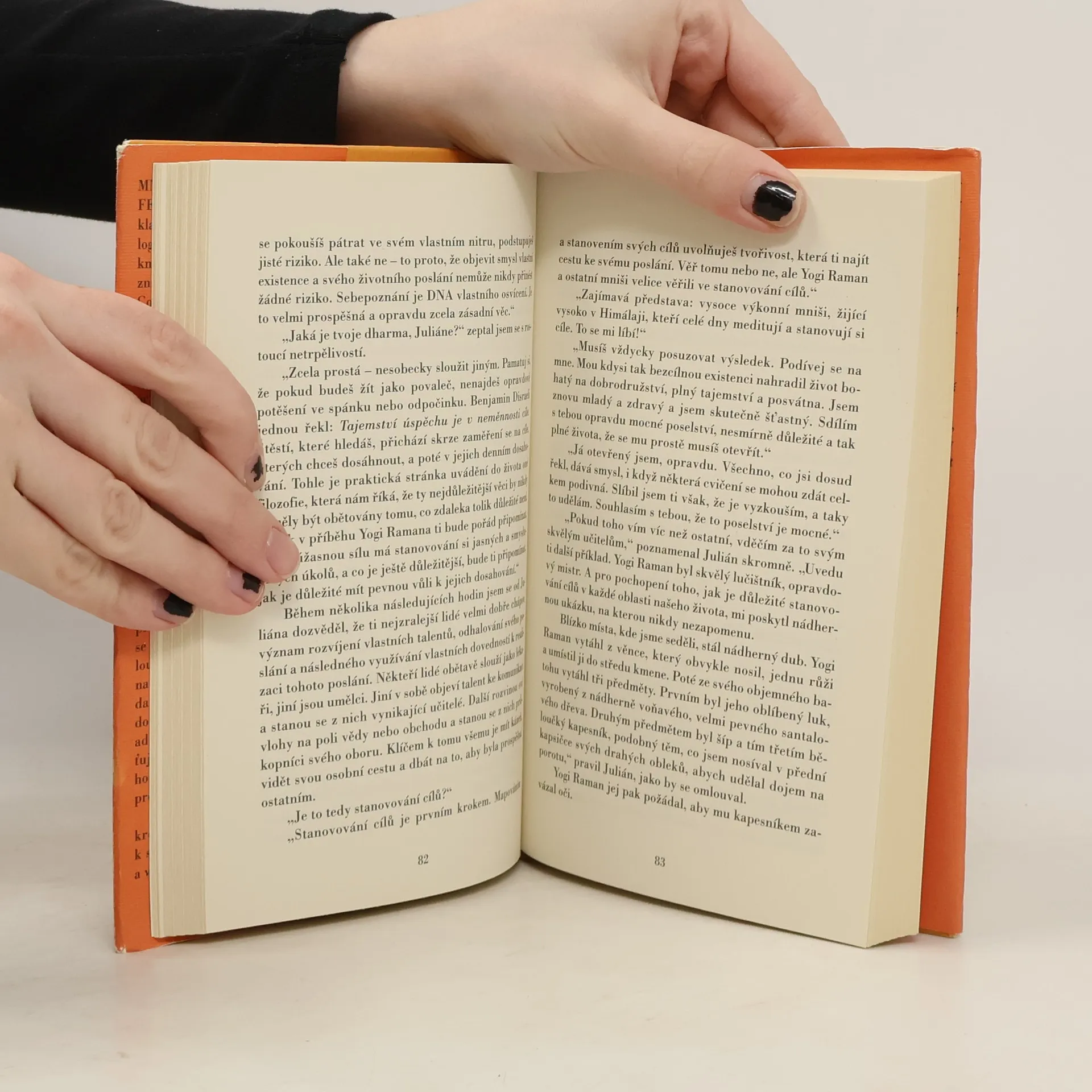 Kniha patřící mezi nejznámější klasická díla s duchovní a psychologickou tematikou. Tato „úchvatná knížka, která přináší potěšení i poznání“, jak se o ní vyjádřil Paulo Coelho, byla přeložena do třiačtyřiceti jazyků a inspiruje miliony čtenářů na celém světě. Vypráví příběh o slavném a bohatém právníkovi Julianu Mantlovi, jenž se ocitl na pokraji smrti, když jednoho dne v přeplněné soudní síni utrpěl infarkt. Jeho fyzický kolaps je provázen krizí duchovní, která jej donutí hluboce se zamyslet nad neutěšeným stavem svého života a vydat se hledat odpovědi na nejdůležitější otázky lidského bytí. V naději, že nalezne štěstí a splnění svých snů, vypravuje se Julián Mantle na putování do nedostupných indických končin obydlených prastarou východní kulturou. Zde se postupně seznamuje se starobylou moudrostí a filozofií, která jej naučí objevovat, kultivovat a ovládat skrytý potenciál vlastního vědomí, těla i ducha. Někdejší slavný advokát, který se postupně oprošťuje od svého dosavadního životního stylu, prochází hlubokou osobní proměnou. Příběh Juliána Mantla čtenáře krok za krokem provází na cestě k sebepoznání a ke smysluplnému a vyrovnanému životu.