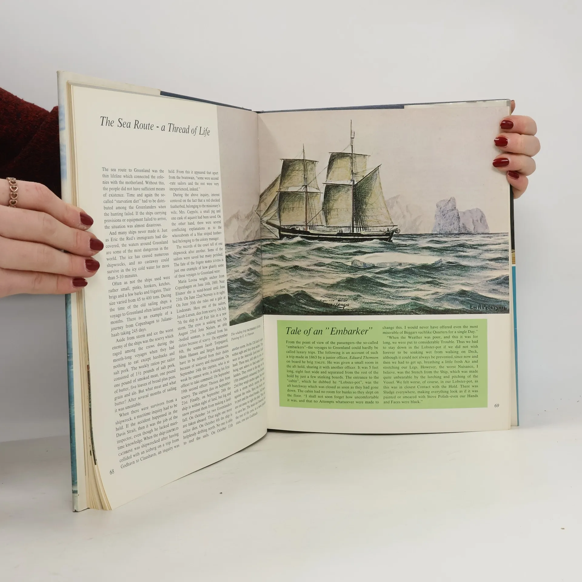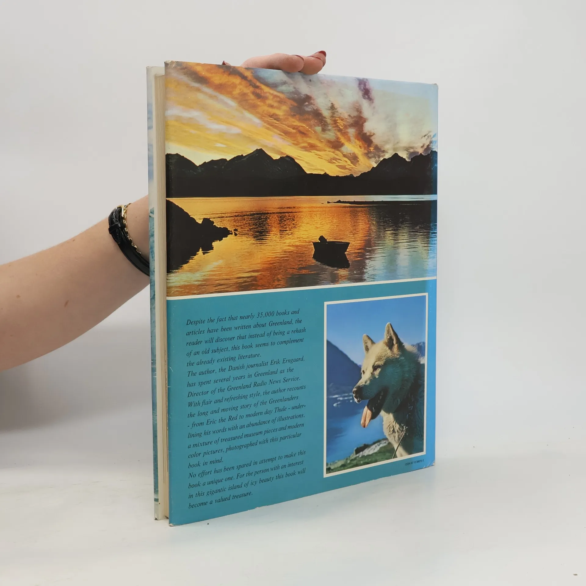 This book does not resemble any of the many other published about Greenland. Even thought it is fairly bursting with illustrations, it is by no means "just" a picture book. And though the text tries to give a historically correct picture of Greenland's development since the earliest times, it does not pretend to be a scientific work. Rather, it is a 'story' book, an account in anecdotal form of the many strange events which have taken place up there in the high North. It is also an account of the equally strange people of various nationalities who - with varying motives - sought fame in the land of the wide open space.