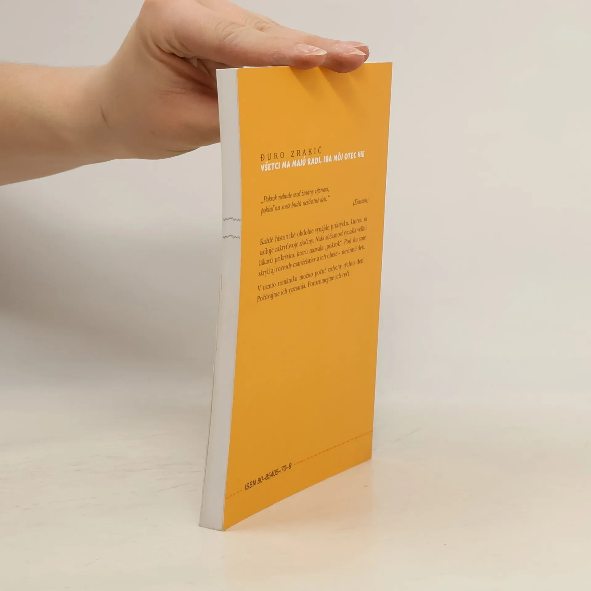 Každé historické obdobie vynájde prikrývku, ktoru sa usiluje zakryť svoje zločiny. Naša súčasnoť vynašla veľmi lákavú prikrývku, ktorú nazvala "pokrok". Pod ňu sme skryli aj rozvody manželstiev a ich obete - nevinné deti. V tomto romániku možno počuť vzdychy týchto detí. Počúvajme ich vyznania. Porozumejme ich reči.