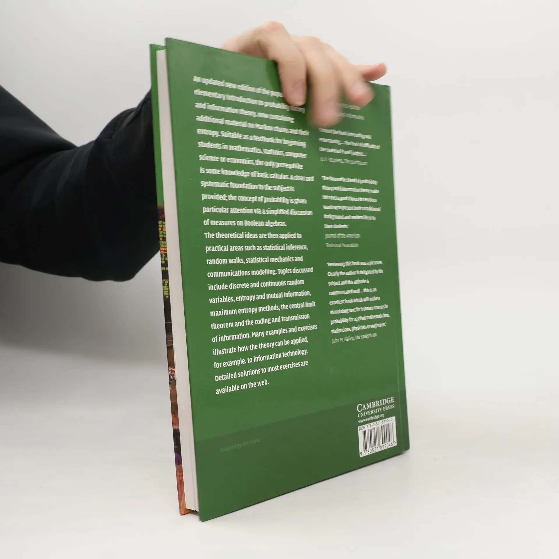 This new and updated textbook is an excellent way to introduce probability and information theory to students new to mathematics, computer science, engineering, statistics, economics, or business studies. Only requiring knowledge of basic calculus, it begins by building a clear and systematic foundation to probability and information. Classic topics covered include discrete and continuous random variables, entropy and mutual information, maximum entropy methods, the central limit theorem and the coding and transmission of information. Newly covered for this edition is modern material on Markov chains and their entropy. Examples and exercises are included to illustrate how to use the theory in a wide range of applications, with detailed solutions to most exercises available online for instructors.