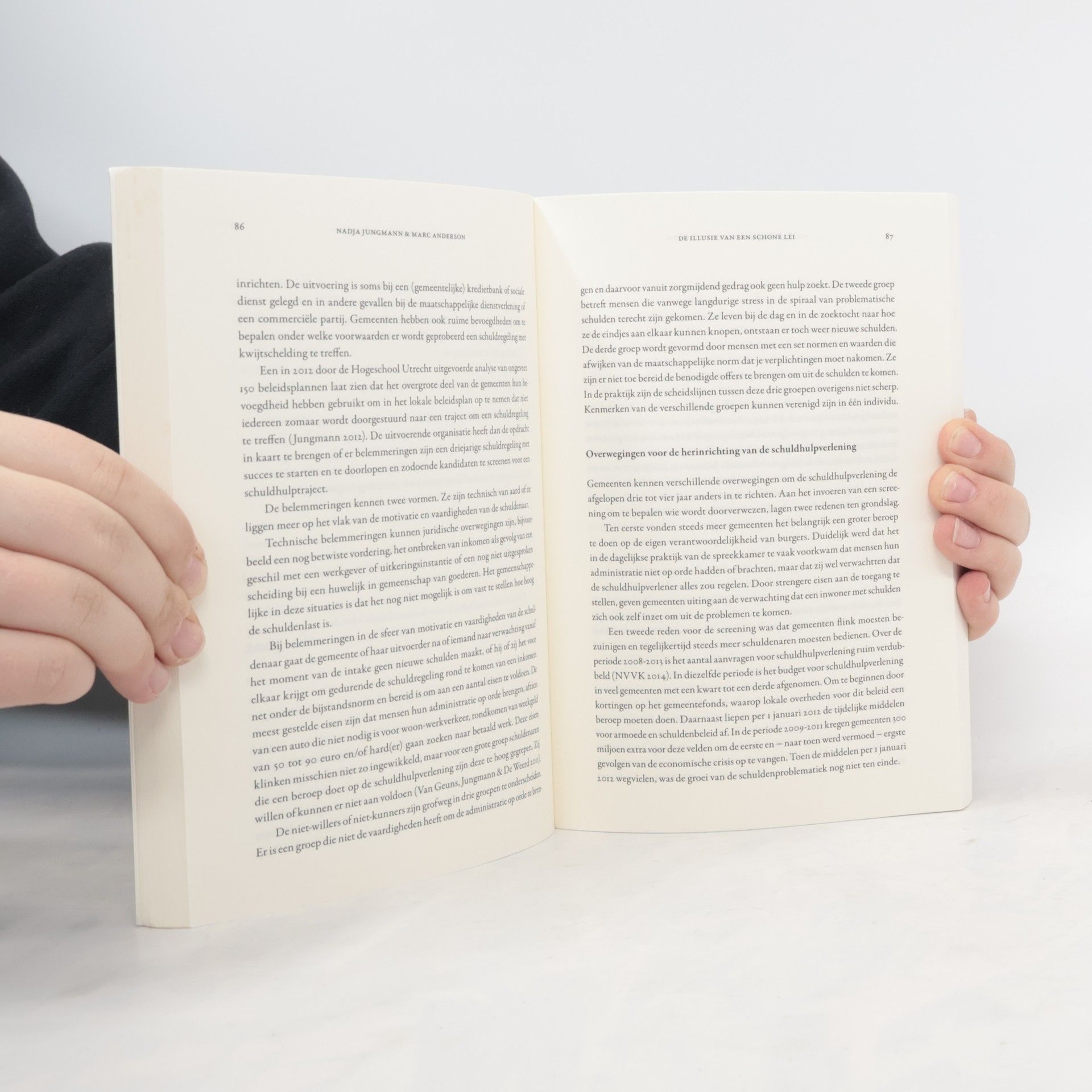 Overheden en huishoudens steken zich massaal in de schulden. Ruim 2 miljoen huishoudens hebben een betalingsachterstand. Het aantal aanmeldingen voor schuldhulpverlening verdubbelde vorig jaar sinds het begin van de crisis tot 89.000. Steeds meer mensen komen er niet meer uit. We zijn gewend door een financiële bril naar schulden te kijken en zien dan: de 3-procentsnorm, het toepassen van renteregels, de protocollen van de schuldhulpverlening. De schuldproblematiek is er niet minder om geworden en aan de diepere oorzaken gebeurt zo weinig. Zijn er ook andere manieren te bedenken om met schulden om te gaan dan aflossen, boetes en schuldsanering? Wat zien we als we door een morele bril kijken? Hoe haalbaar is kwijtschelding? Hoe kunnen schuldenaren met een digitaal platform weer greep op hun leven krijgen? En waarom is meer gelijkwaardigheid tussen schuldenaar en schuldeiser geen illusie? Dit boek is een zoektocht van de beste deskundigen van de schuldenproblematiek naar onorthodoxe oplossingen voor schuldproblemen, met verrassende ontdekkingen. Met bijdragen van: Nadja Jungmann, Roeland van Geuns, Marcel Canoy, Robin Fransman, Marc Räkers, Femmianne Bredewold, Rodrigo Fernandez, Anneke Menger, Jaap van Vliet, Erik Bähre, Jelle van der Meer, Tamara Madern, Anna van der Schors en Marc Anderson.